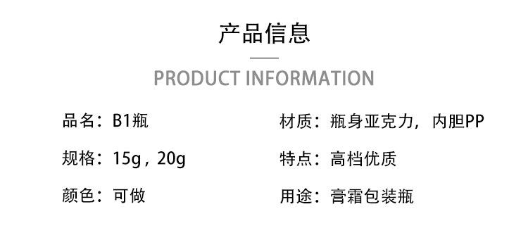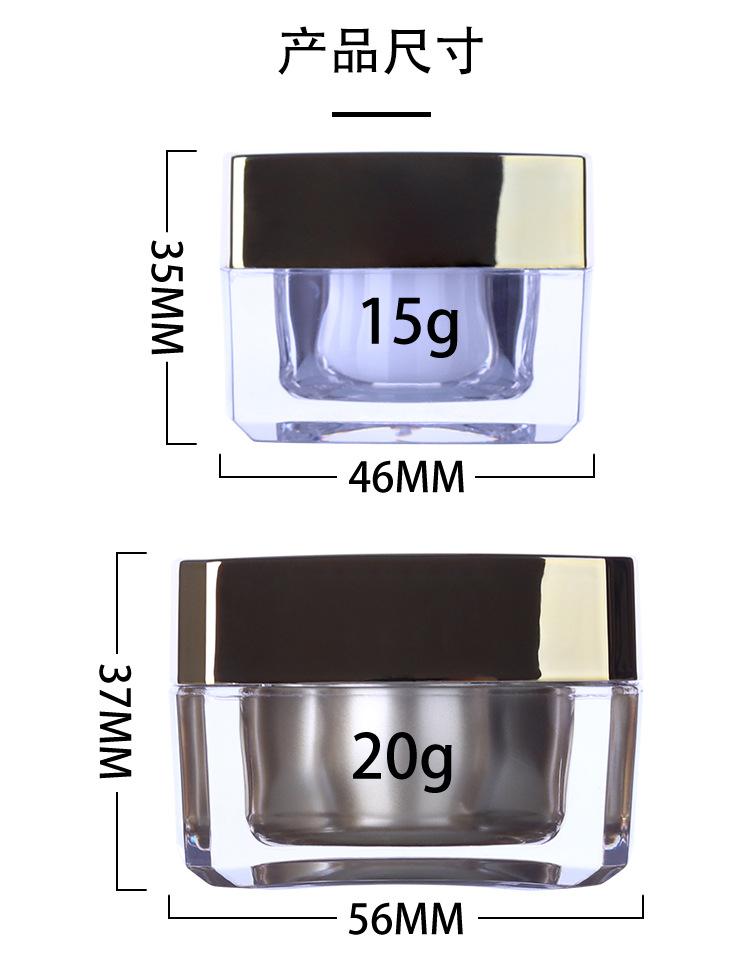 Frasco de acrílico para creme de 15g e 20g, caixa de base para creme para os olhos, frasco para cuidados com a pele, frasco de loção cosmética, frasco de plástico