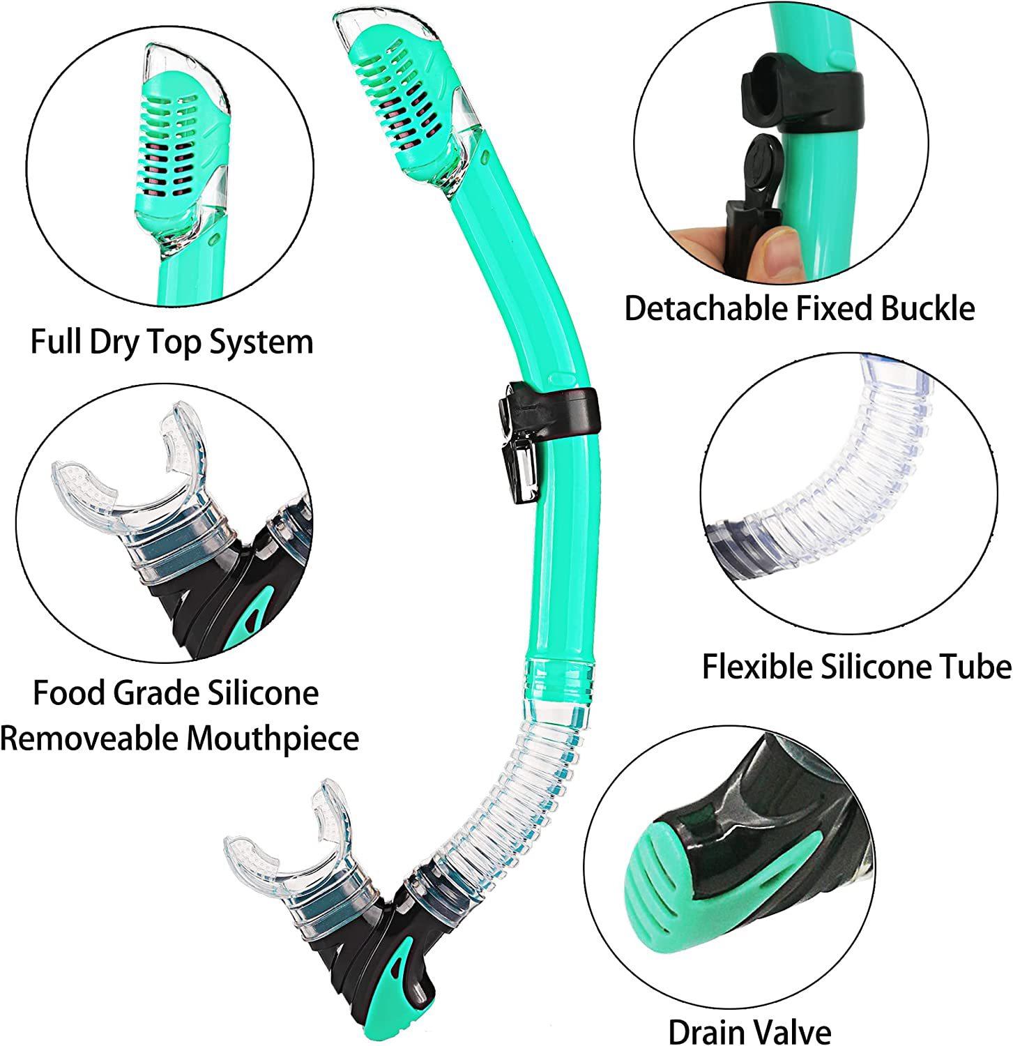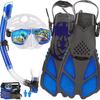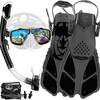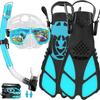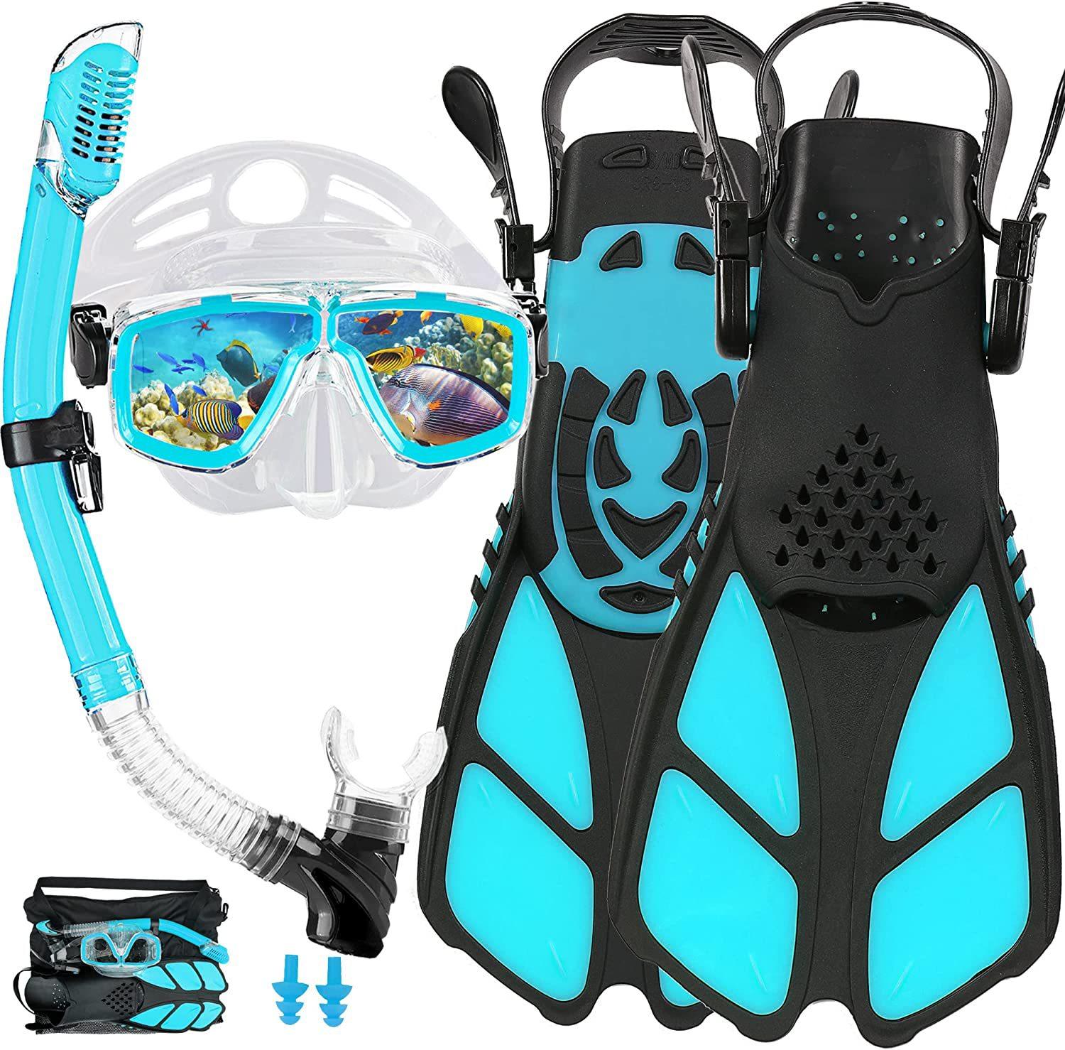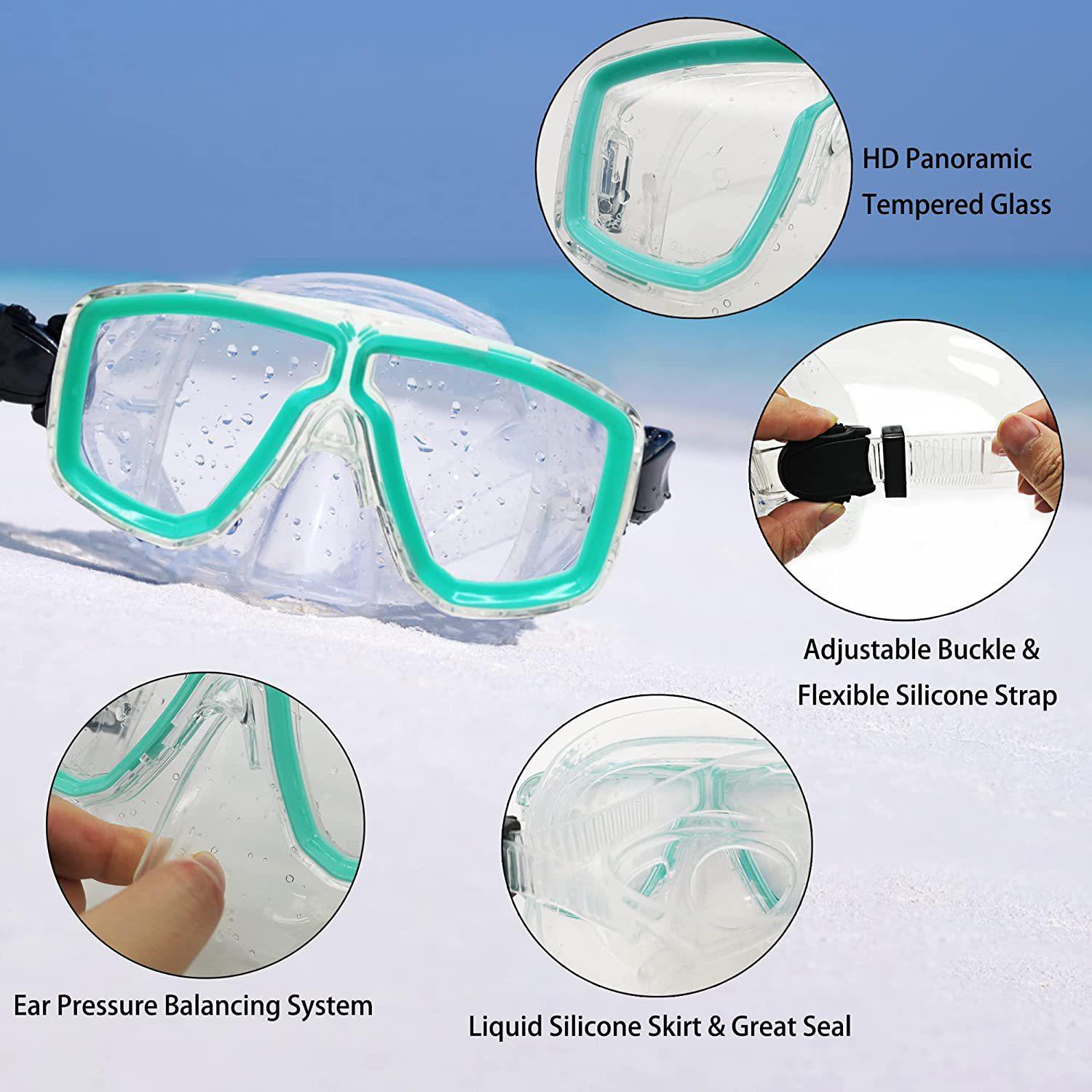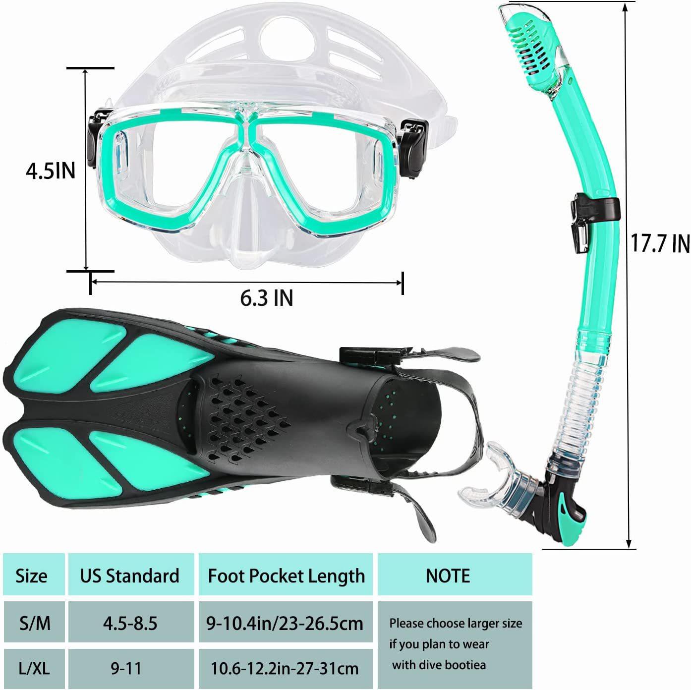 Traje de snorkeling adulto óculos de mergulho de vidro temperado nadadeiras máscara de snorkeling tubo de respiração seco completo snorkeling conjunto de três peças