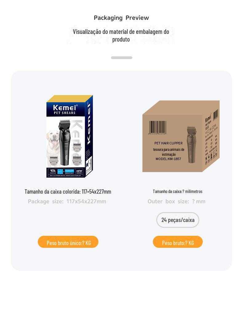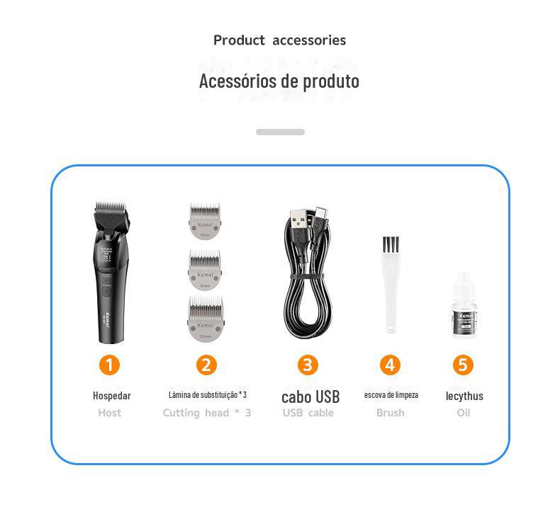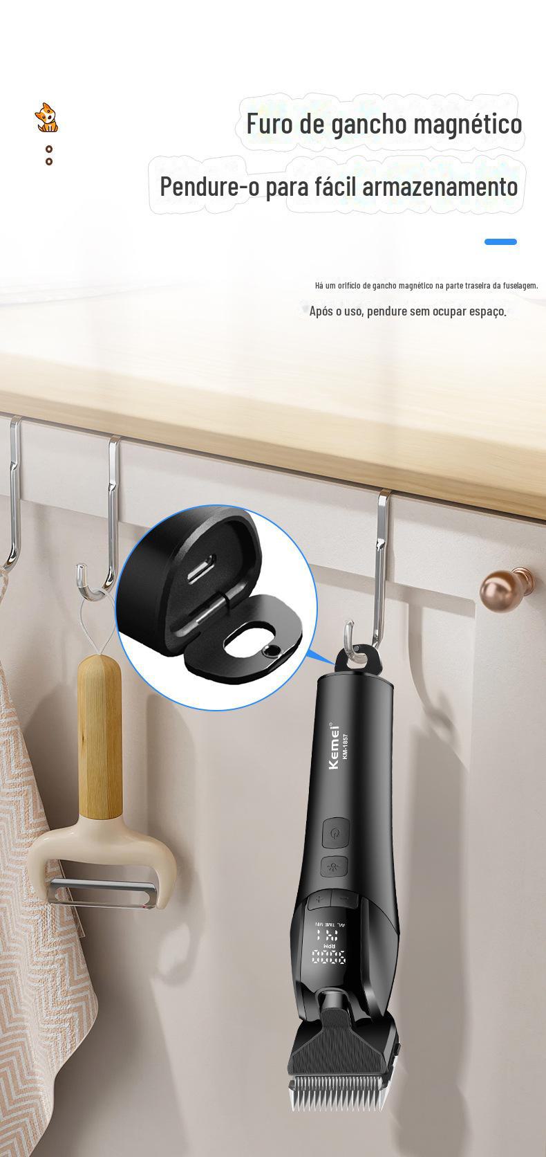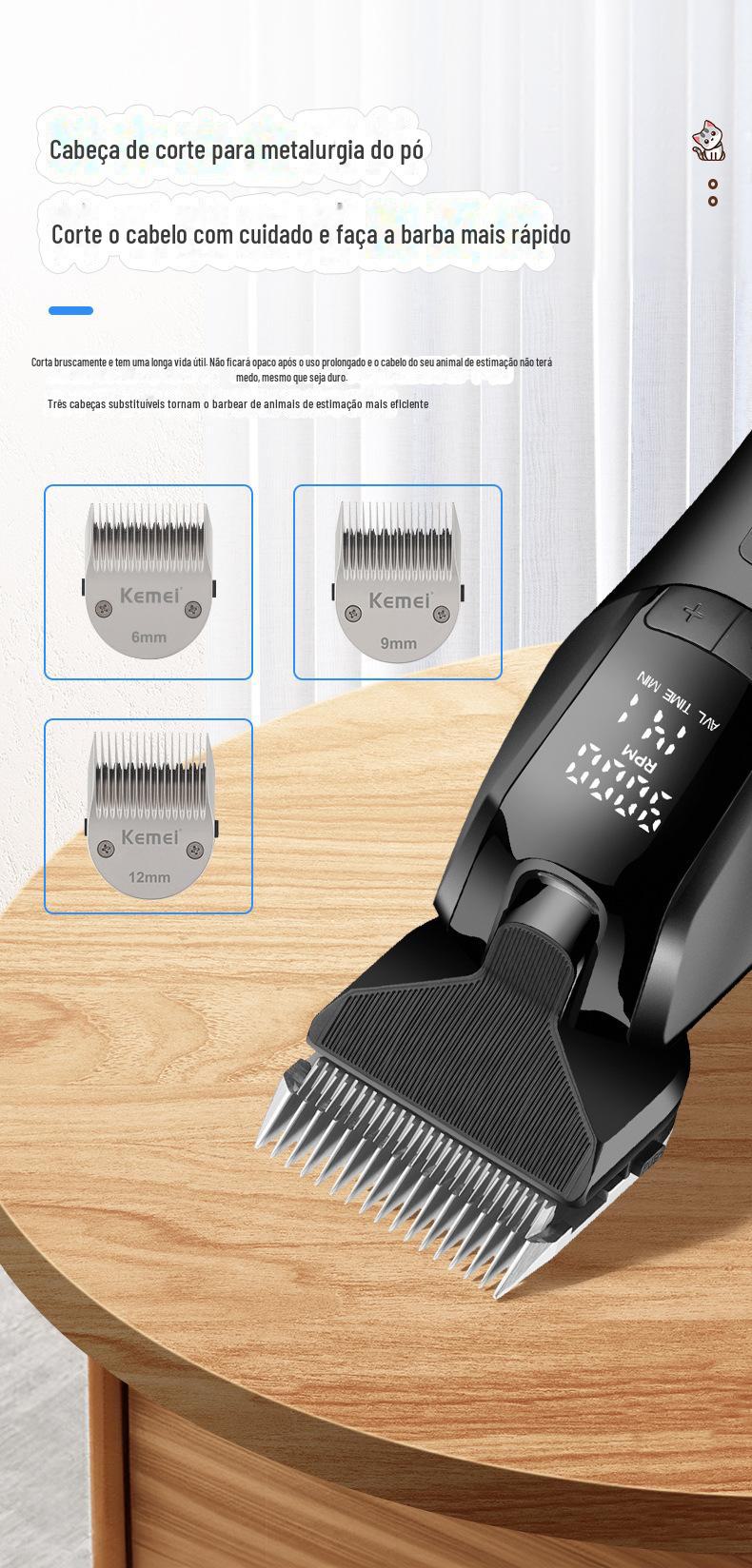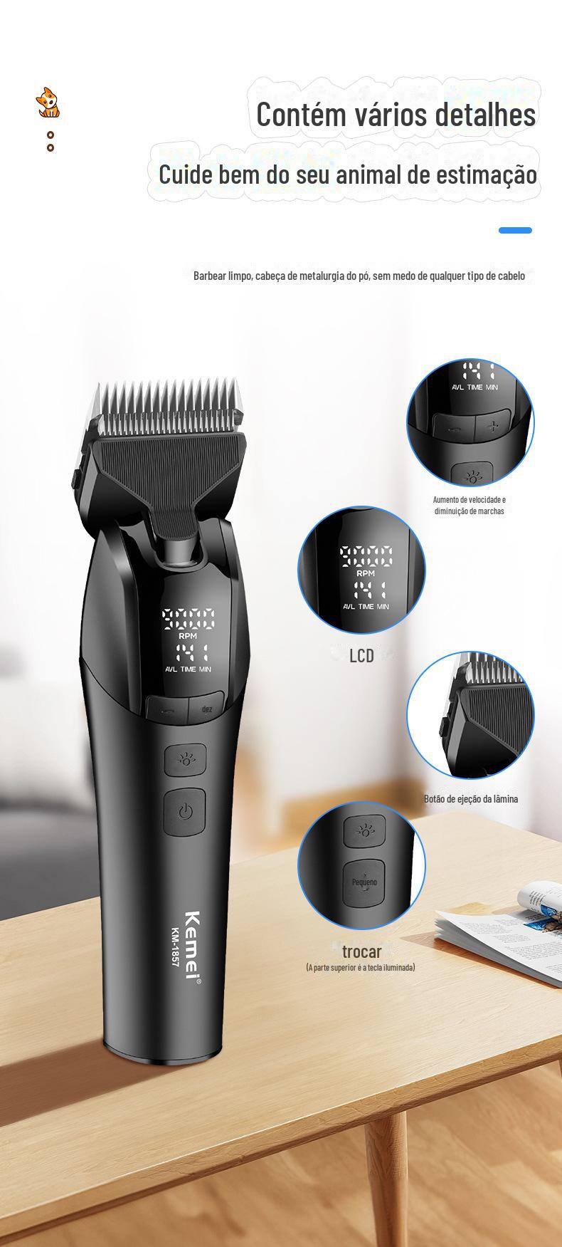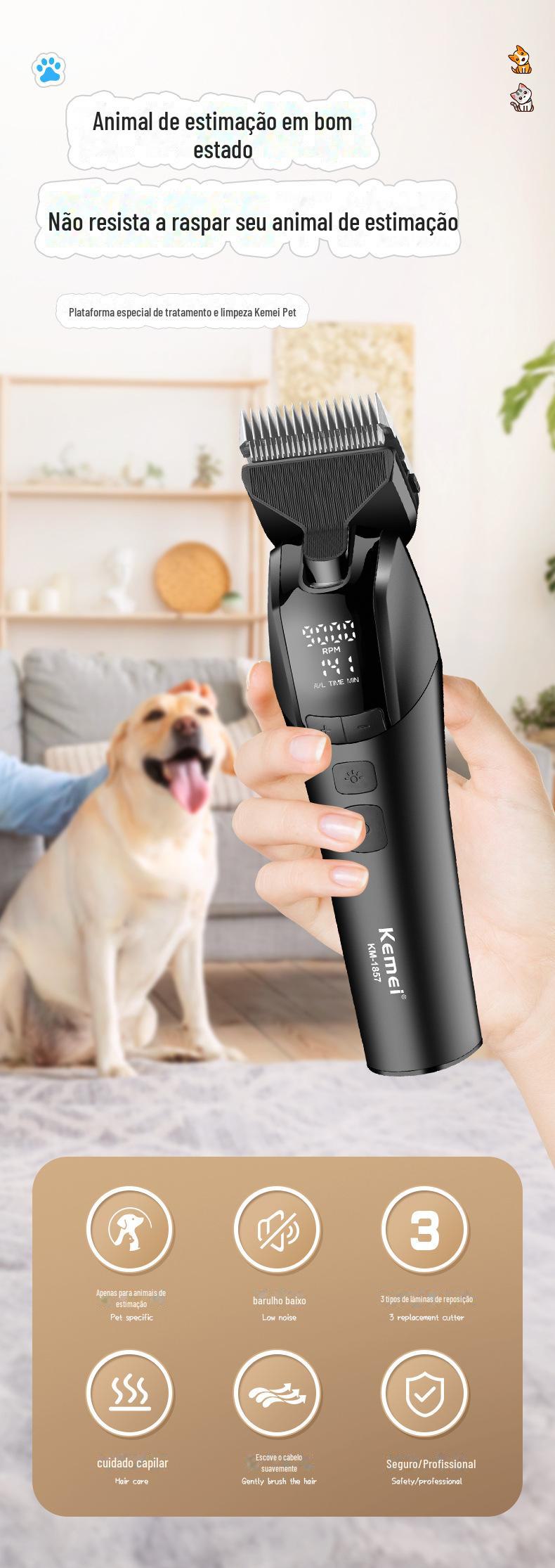 Kemei Aparador de Pelos para Animais de Estimação Elétrico Km-1857 Display Digital Inteligente Barbeador para Gatos e Cães Ferramenta de Grooming Profissional