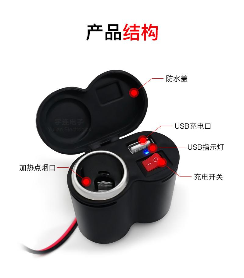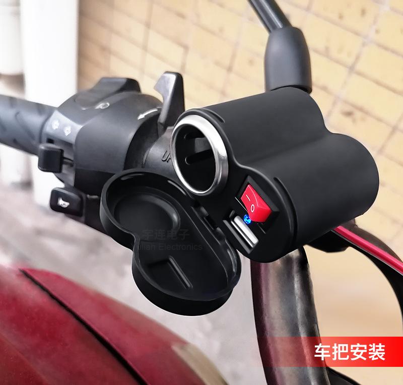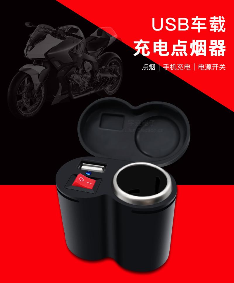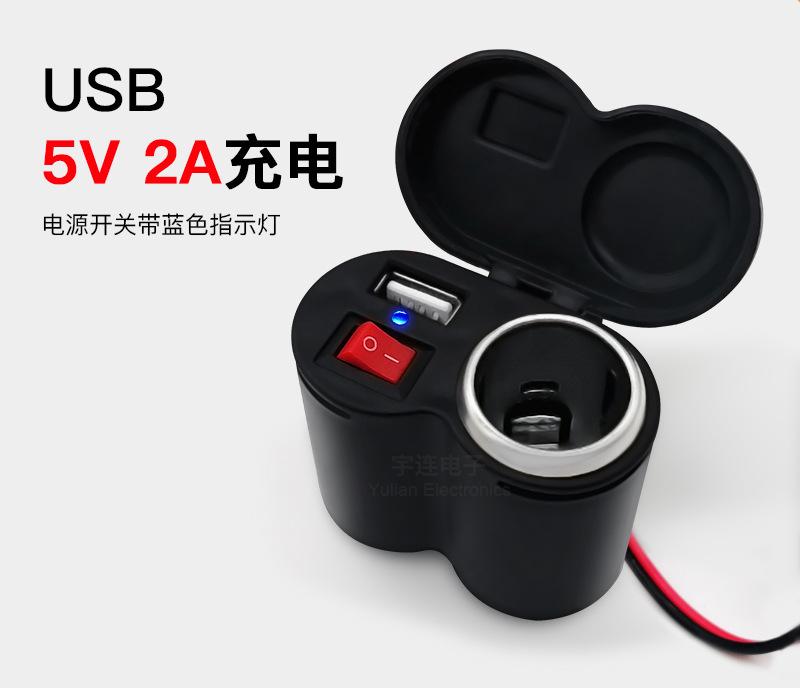 Carregador de Carro para Motocicleta 12V Carregador USB Acendedor de Cigarros com Interruptor e Luz Azul Universal Portátil Carregamento Rápido
