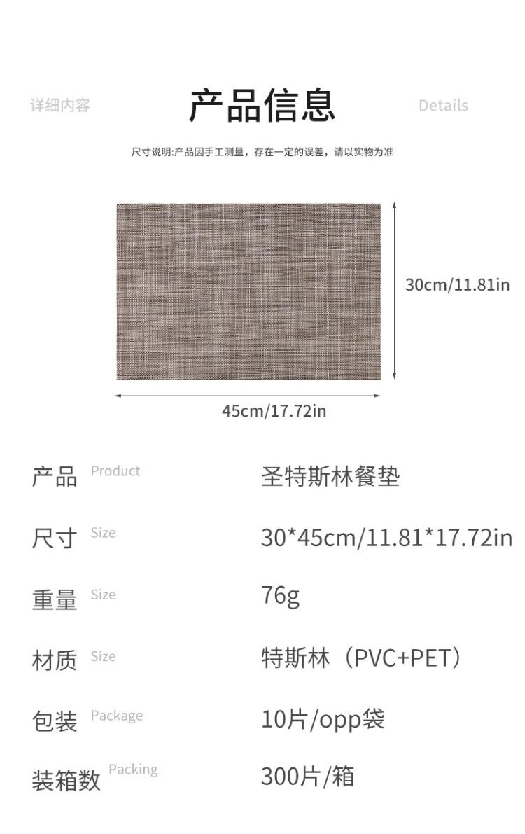 Shengte 2x 2 Western Restaurant Europeu Cor Tapete de Mesa Isolante Retangular Placemat PVC Nordic Style Simple Set