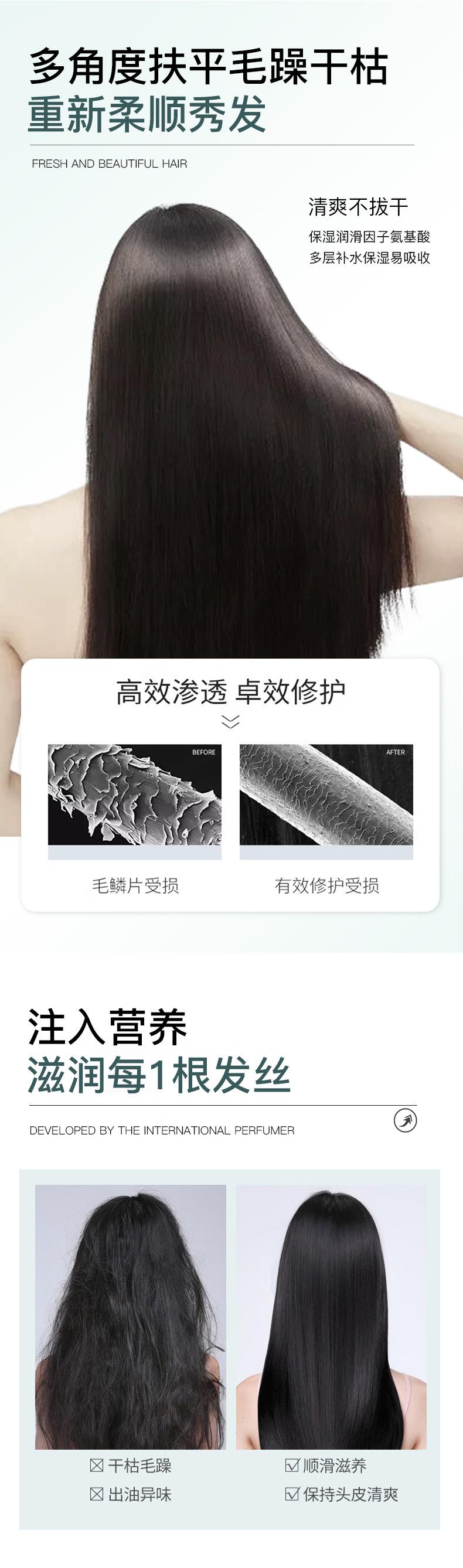 Refreshing, oil-controlling, smooth, dandruff-removing and fluffy