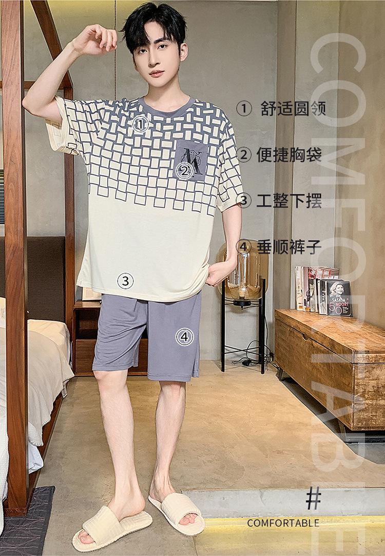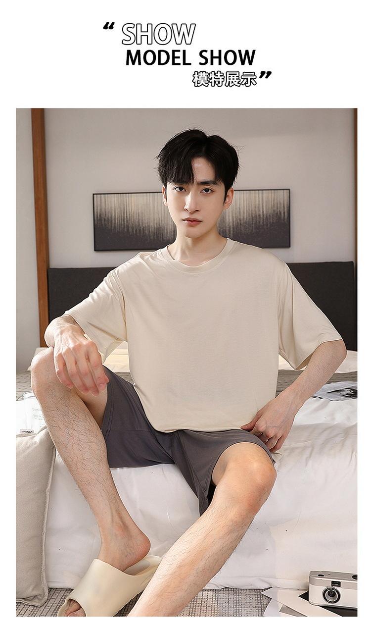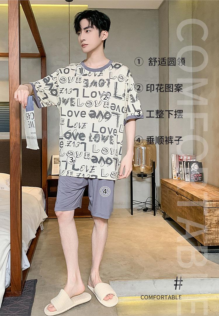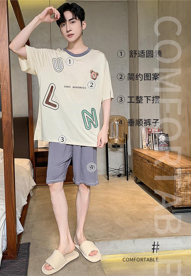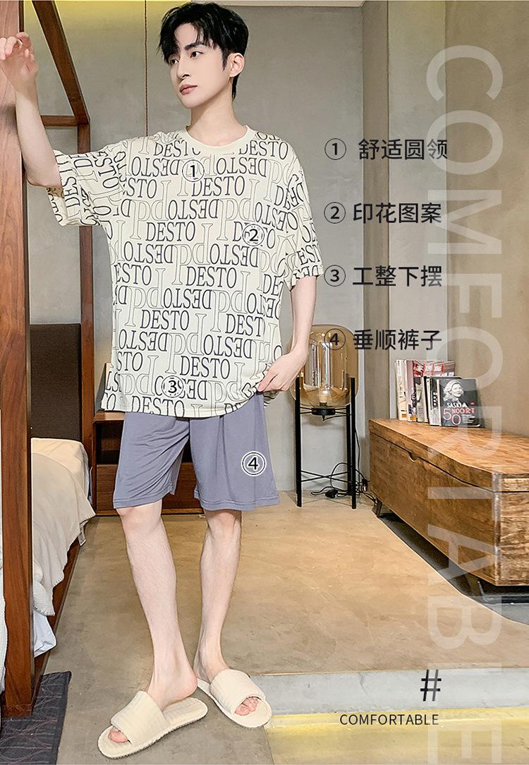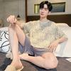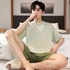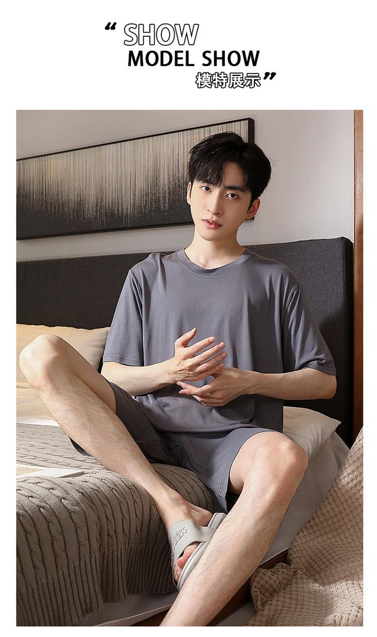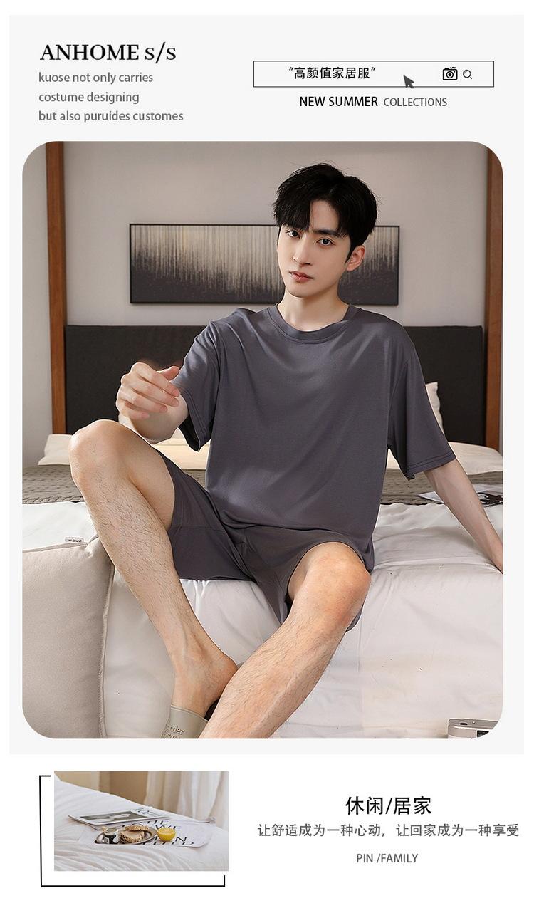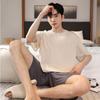 Pijamas masculinos de verão, pijamas masculinos de seda gelada, manga curta, roupas para casa, verão, imitação fina de seda, pai de meia-idade, terno plus size