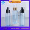 100ml; blue transparent bottle + golden anodized aluminum spray pump; pet