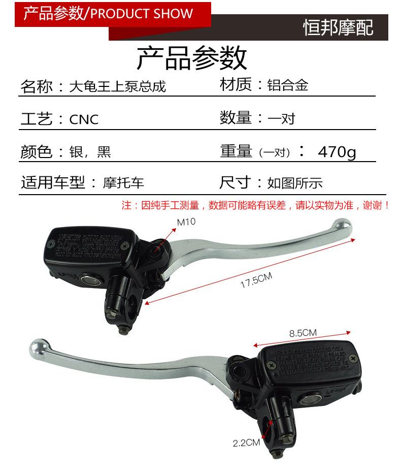 Acessórios para motocicletas: Turtle King, freio a disco, conjunto superior da bomba, bomba de freio hidráulica, conjunto da bomba, freio esquerdo e direito