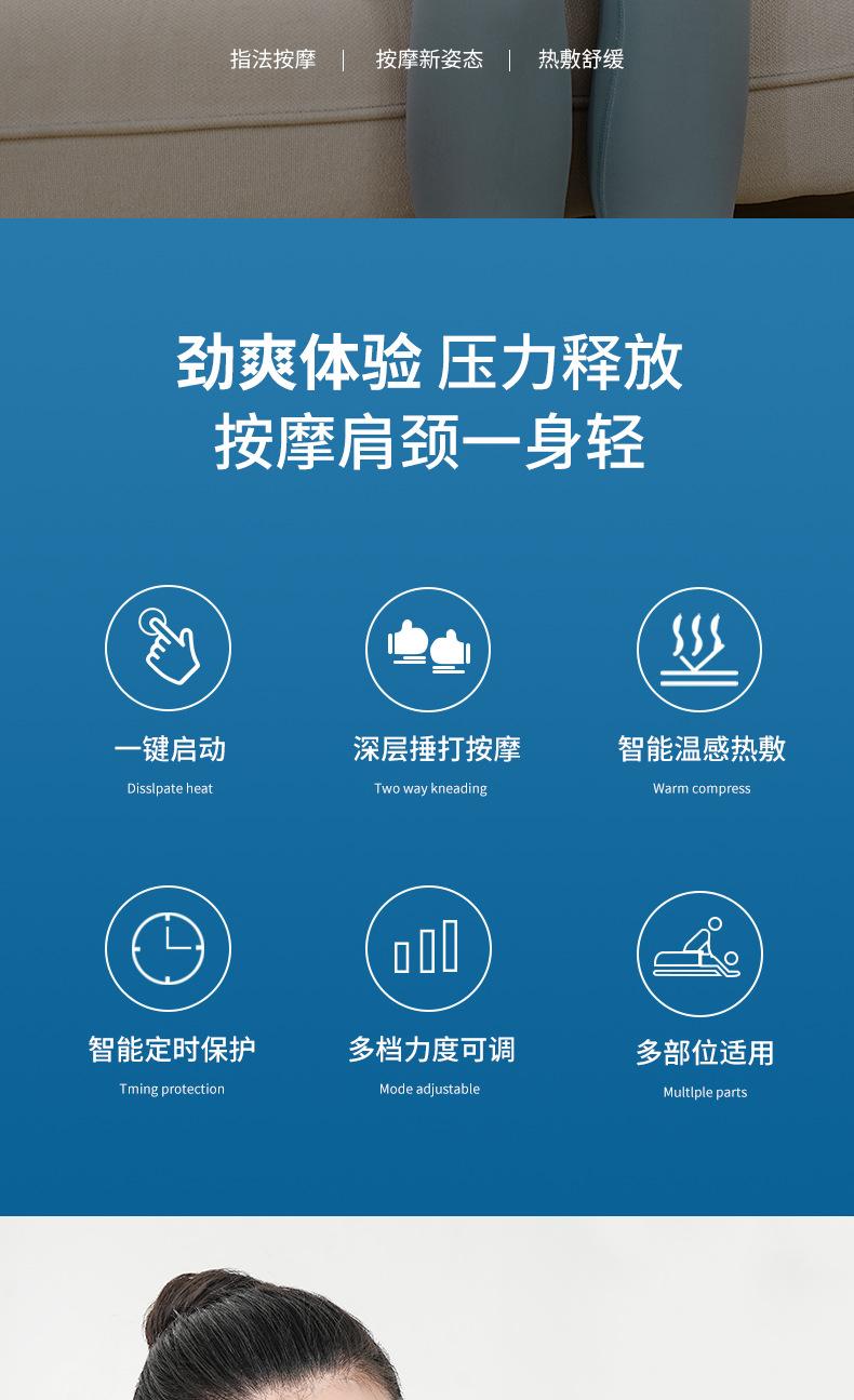Blue (one key to start deep beating massage intelligent warm feeling hot compress intelligent timing multi-gear strength)