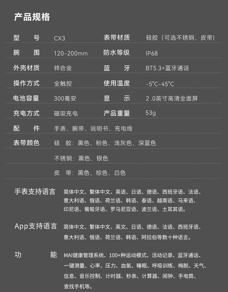 Amazon CX3 Smart Watch Bluetooth Call Sports Monitoring Watch Alta Precisão Frequência Cardíaca Oxigênio no Sangue Pulseira à prova d'água
