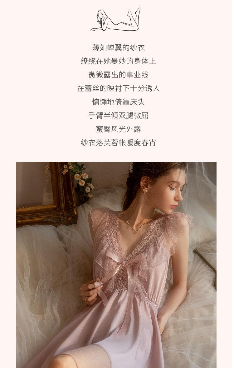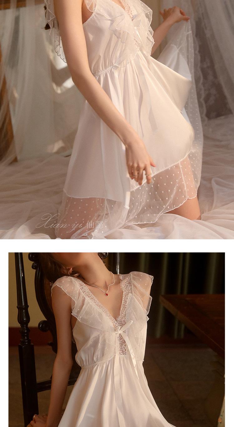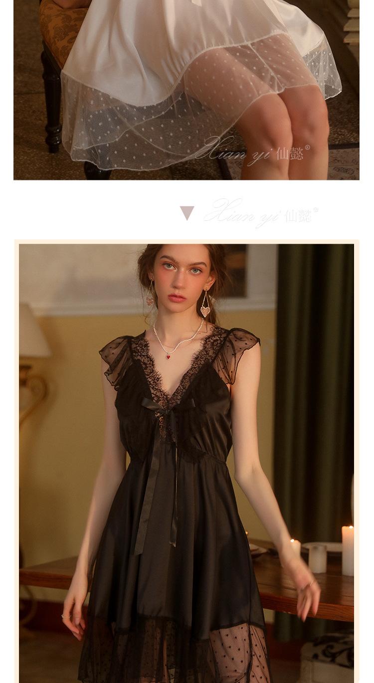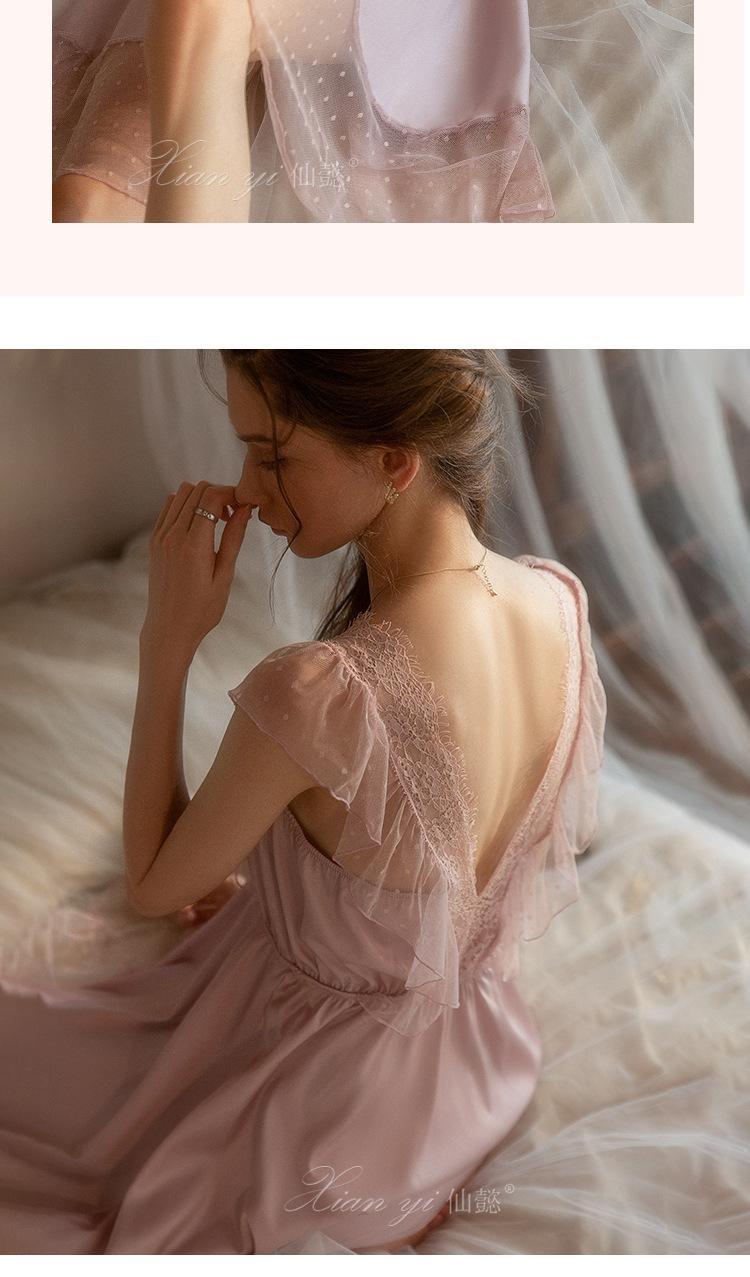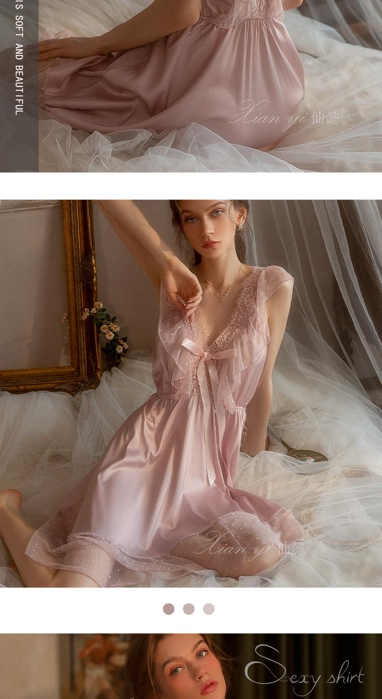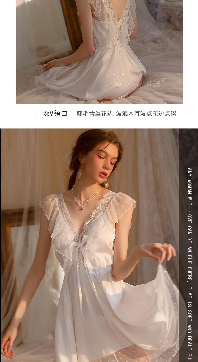 Camisola de Renda Xian Yi Feminina Verão Sexy Decote V Profundo Desejo Puro Alça Princesa Pijama Longo de Alta Qualidade Roupa de Casa 472