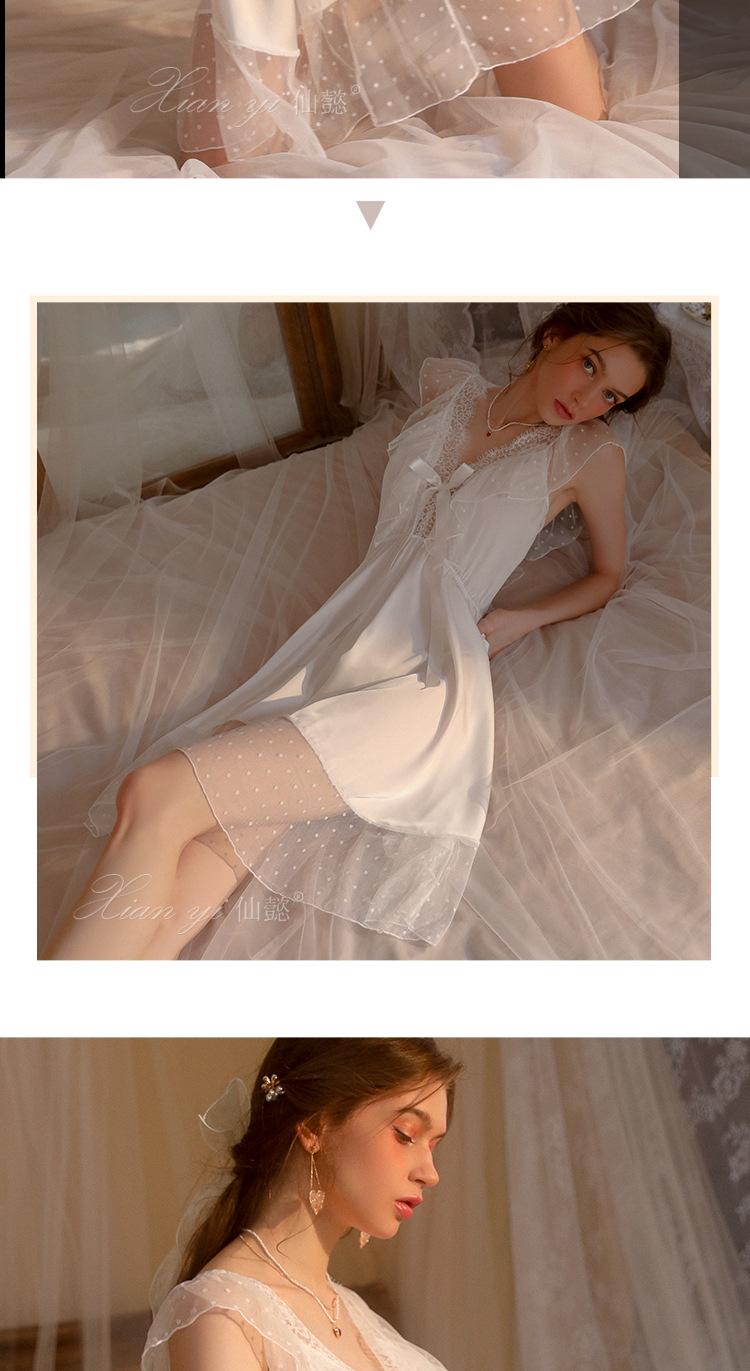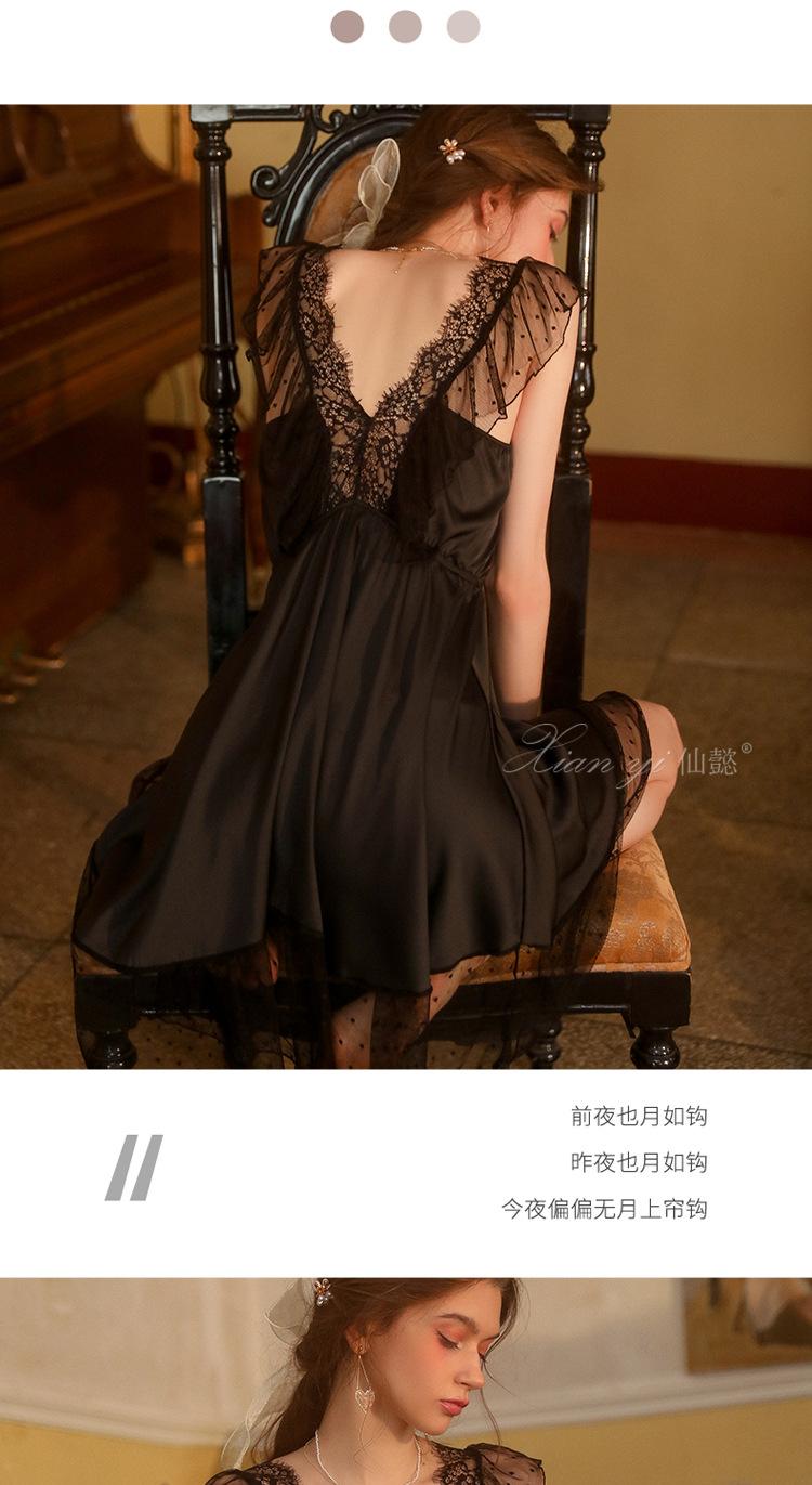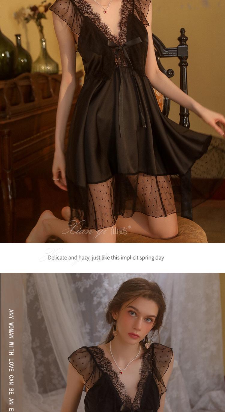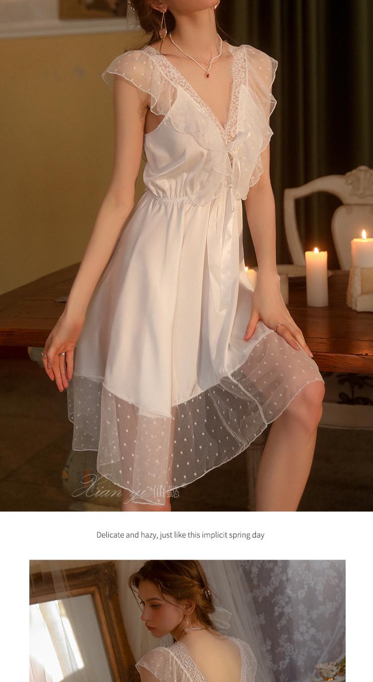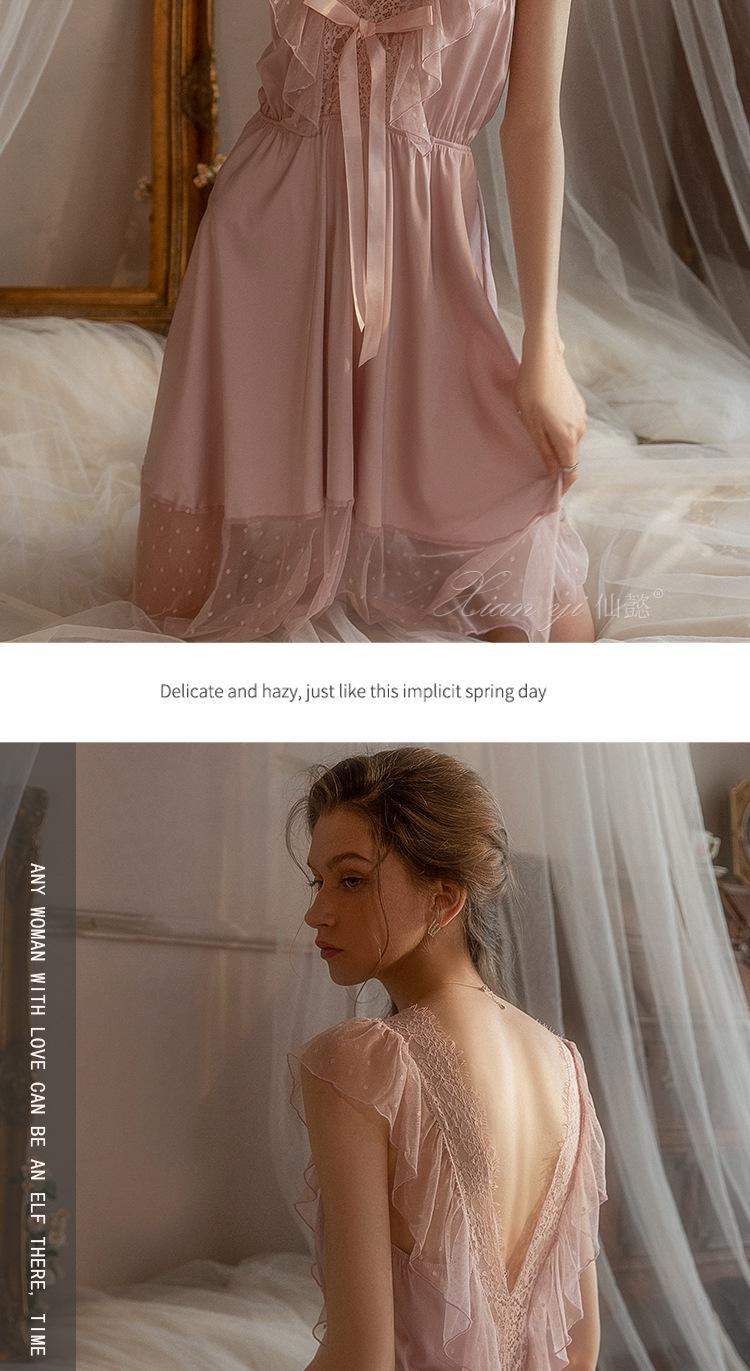Camisola de Renda Xian Yi Feminina Verão Sexy Decote V Profundo Desejo Puro Alça Princesa Pijama Longo de Alta Qualidade Roupa de Casa 472