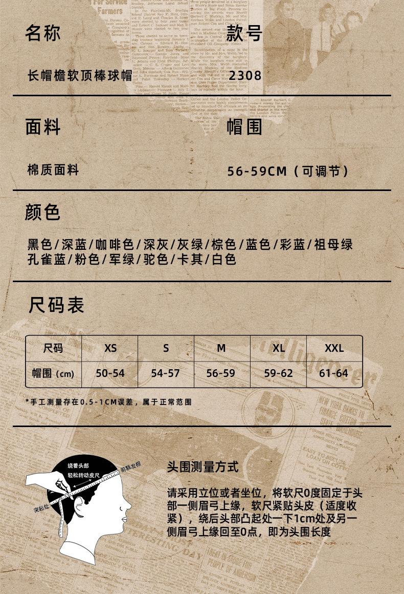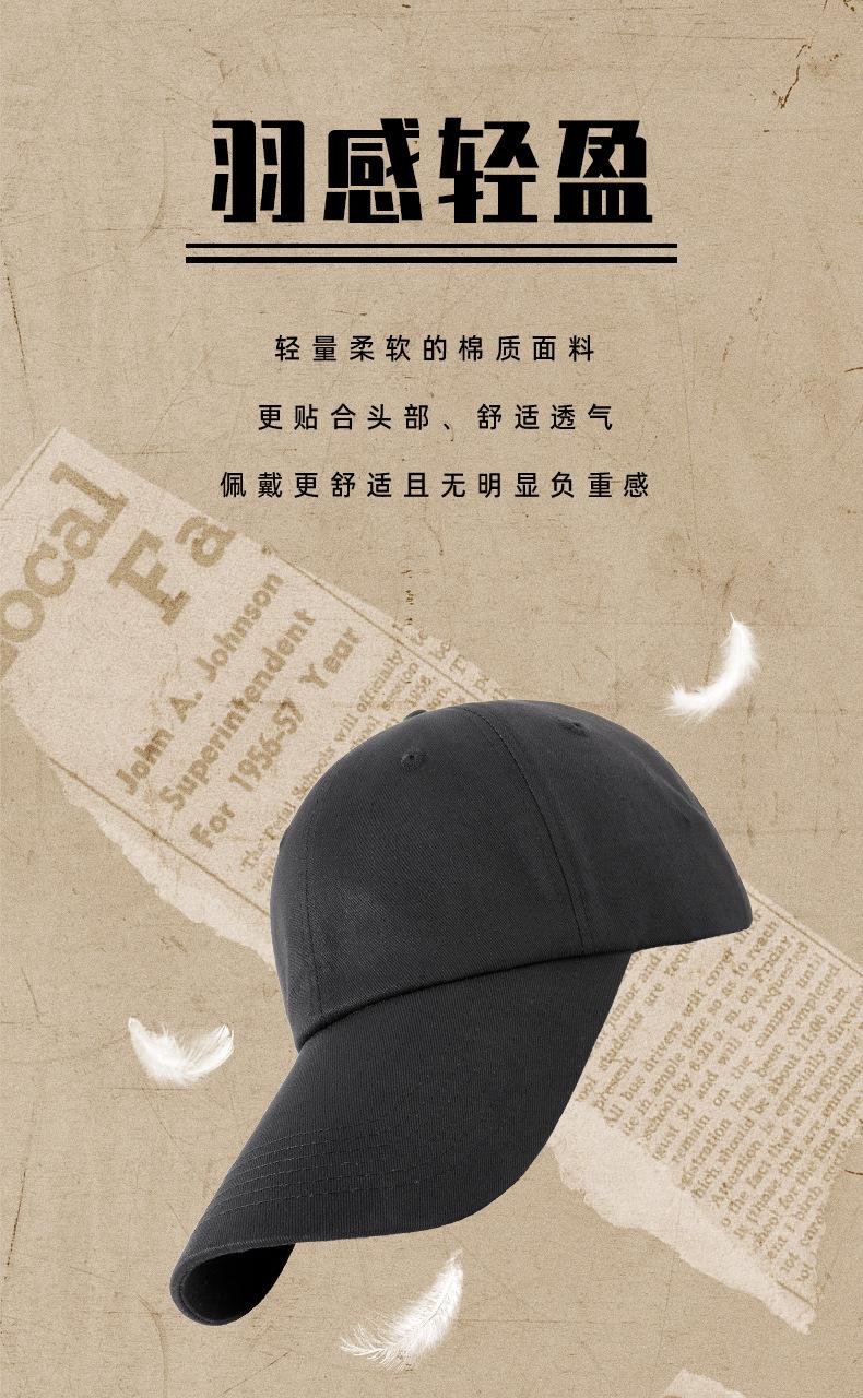 Four Seasons Pure Cotton Soft Top Extra Long Brim Sunshade Baseball Cap Light Edition Publicidade Cap Rosto ao ar livre masculino e feminino mostrando Small Cap
