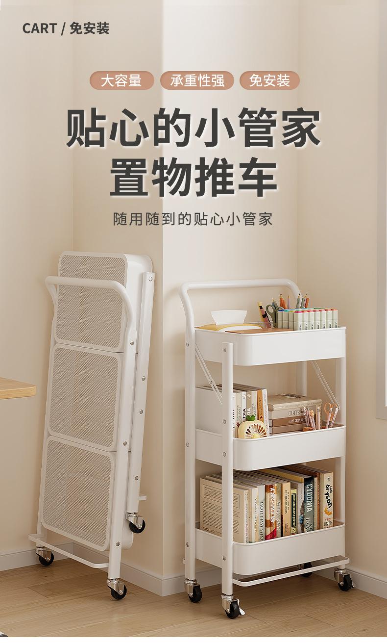 Rack de Armazenamento Dobrável, Sem Instalação, Mesa de Múltiplas Camadas, Rack de Armazenamento Removível, Carrinho de Armazenamento para Sala de Estar e Cozinha
