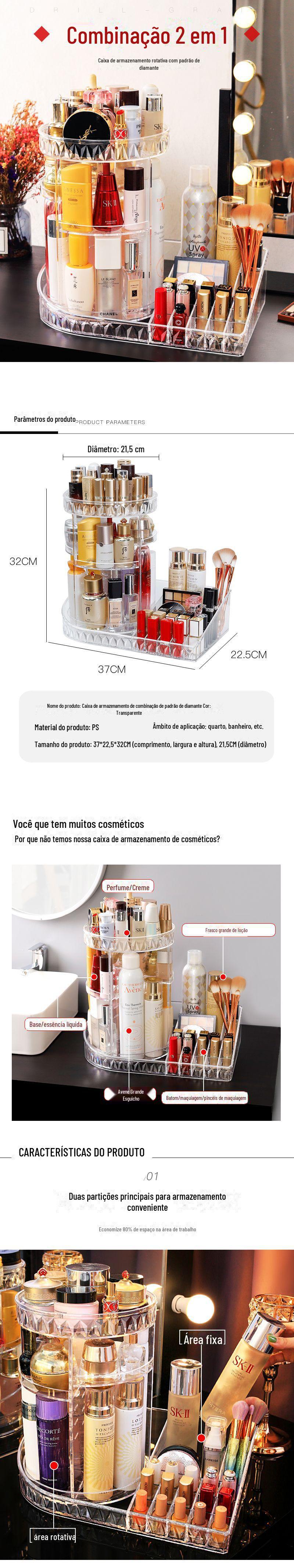 Caixa de armazenamento cosmético transparente rotativo desktop não-acrílico batom cuidados da pele rack combinação