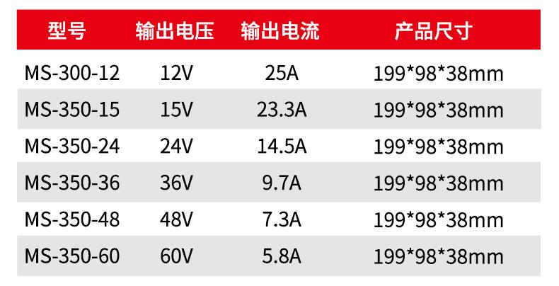 Ms-350-24V12V15V36V48V Dc 25A15A220 para 24V Dc Fonte de alimentação comutada 350W