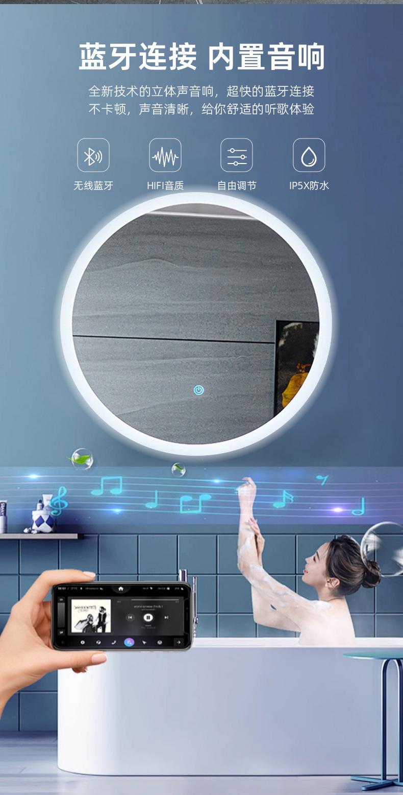 Espelho Inteligente para Banheiro Selecionado Cuidadosamente, Espelho Redondo de Alta Definição com Luz Bluetooth, Fabricante Antiembaçante Produz Espelho de Banheiro Personalizado, Espelho de Maquiagem