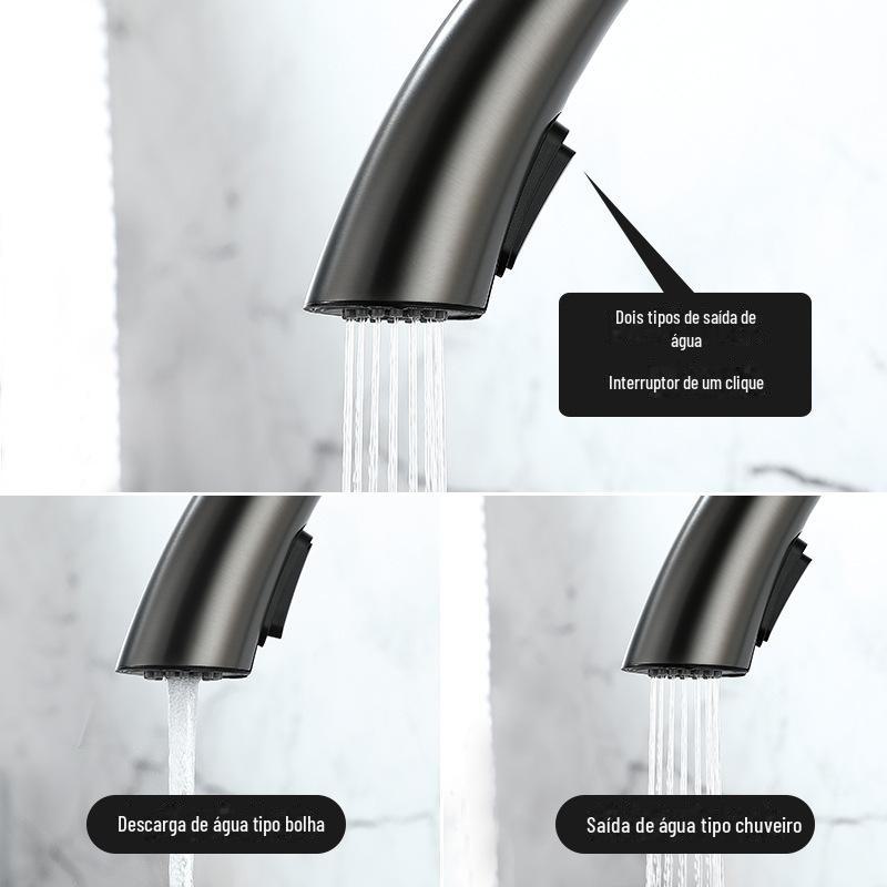 Torneira Puxável Gunmetal para Comércio Exterior Quente e Fria Cozinha Oculta Aço Inoxidável 304 Atacado Transfronteiriço Modelo Mais Vendido