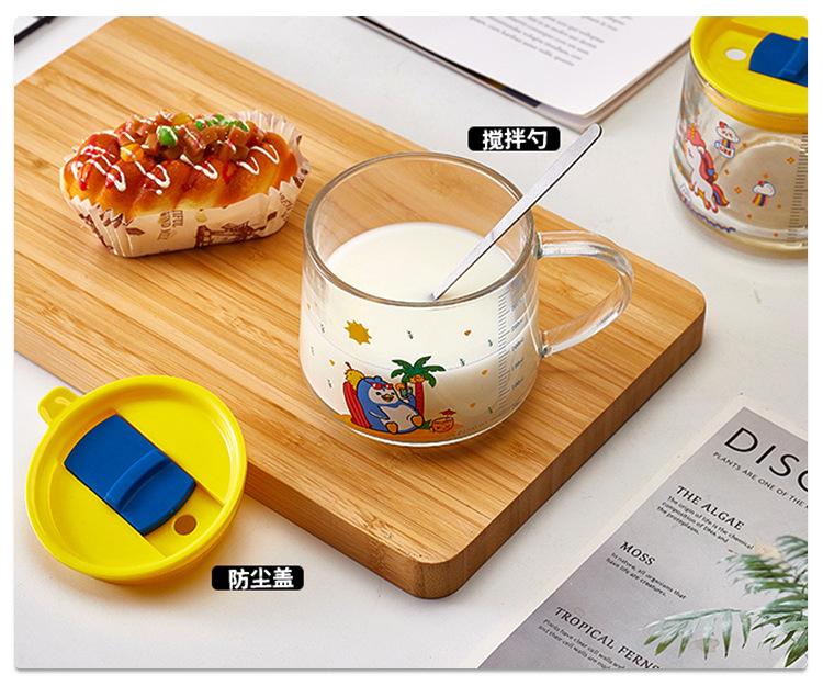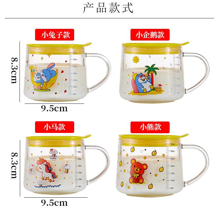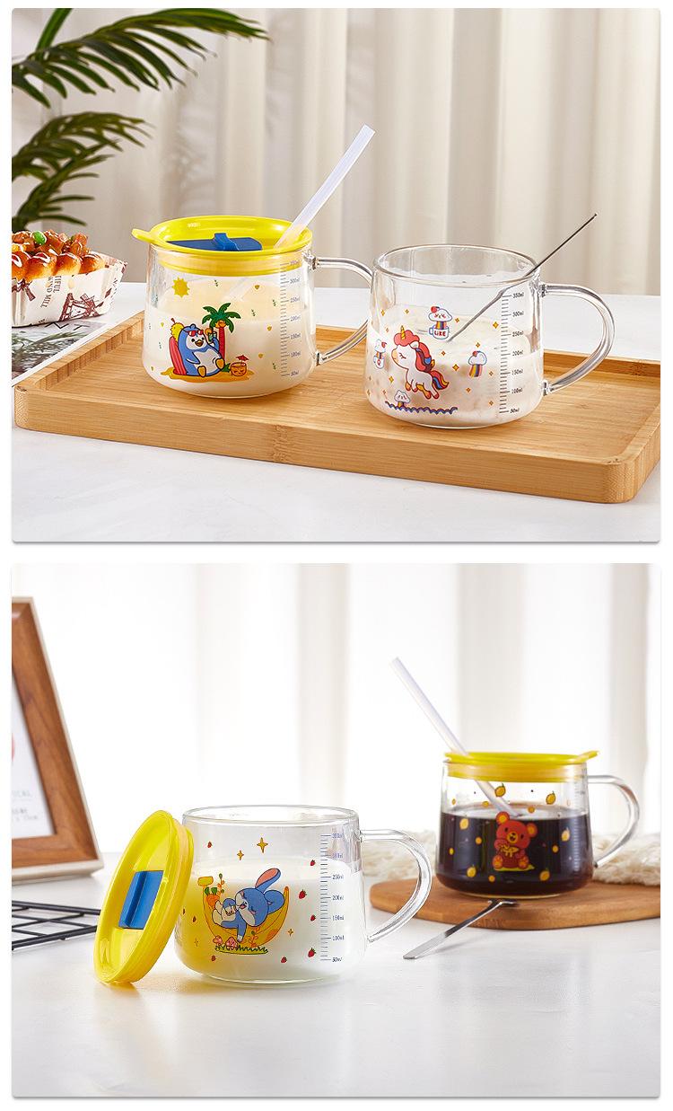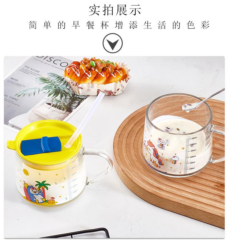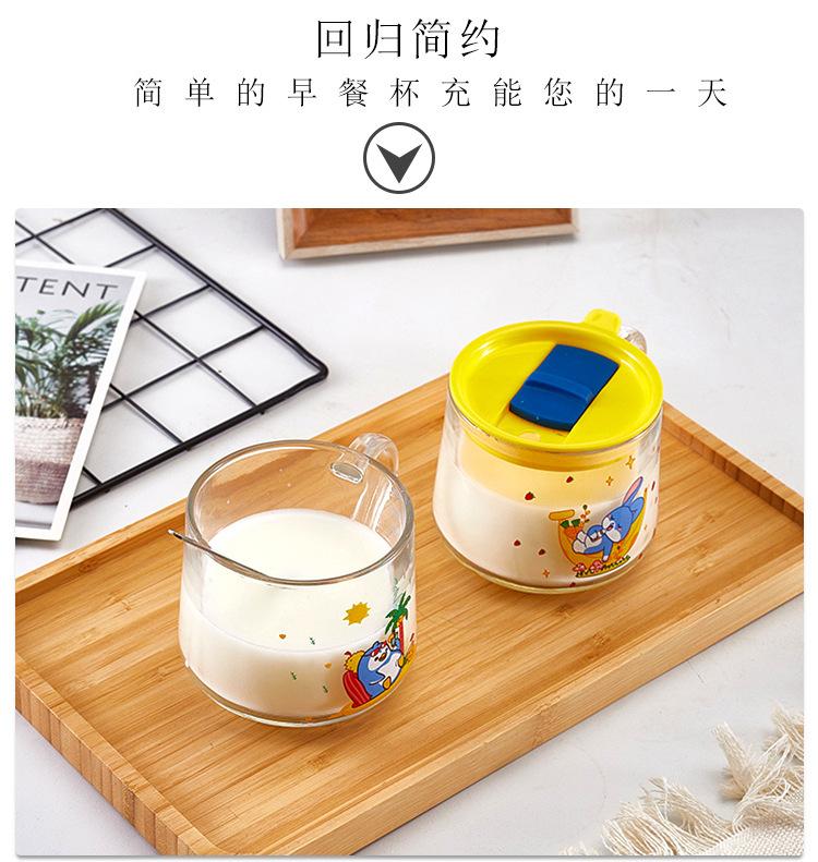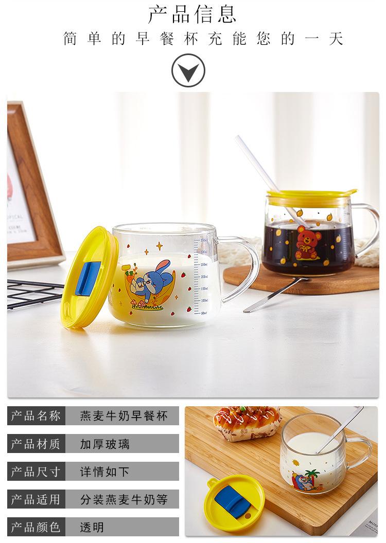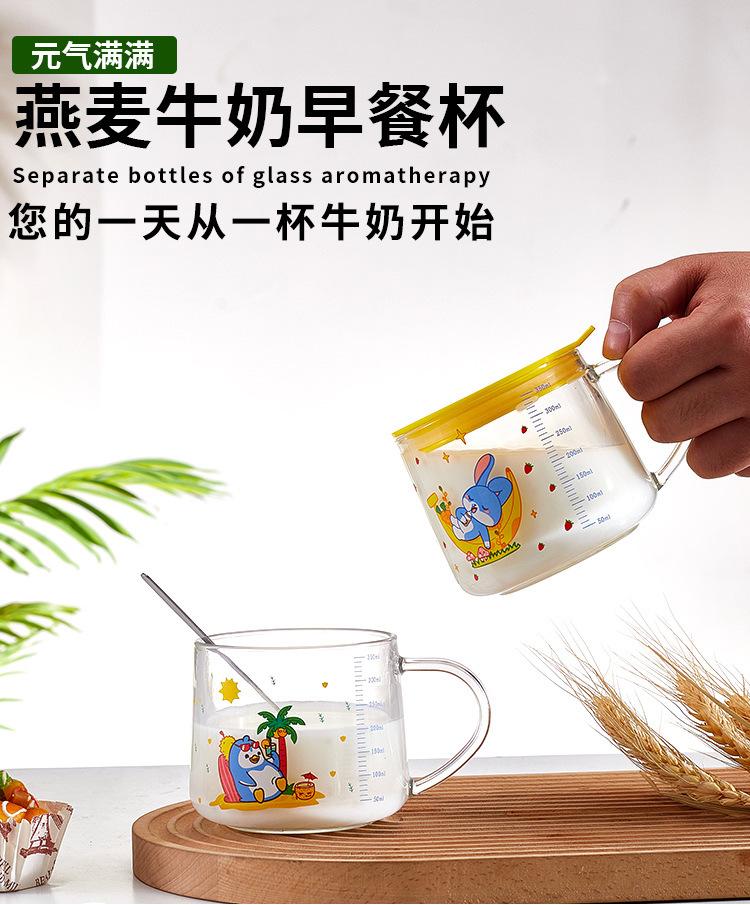 Xícara de café da manhã de aveia com alça de vidro transparente copo de leite copo de água para estudantes com tampa xícara de chá de leite xícara de café atacado