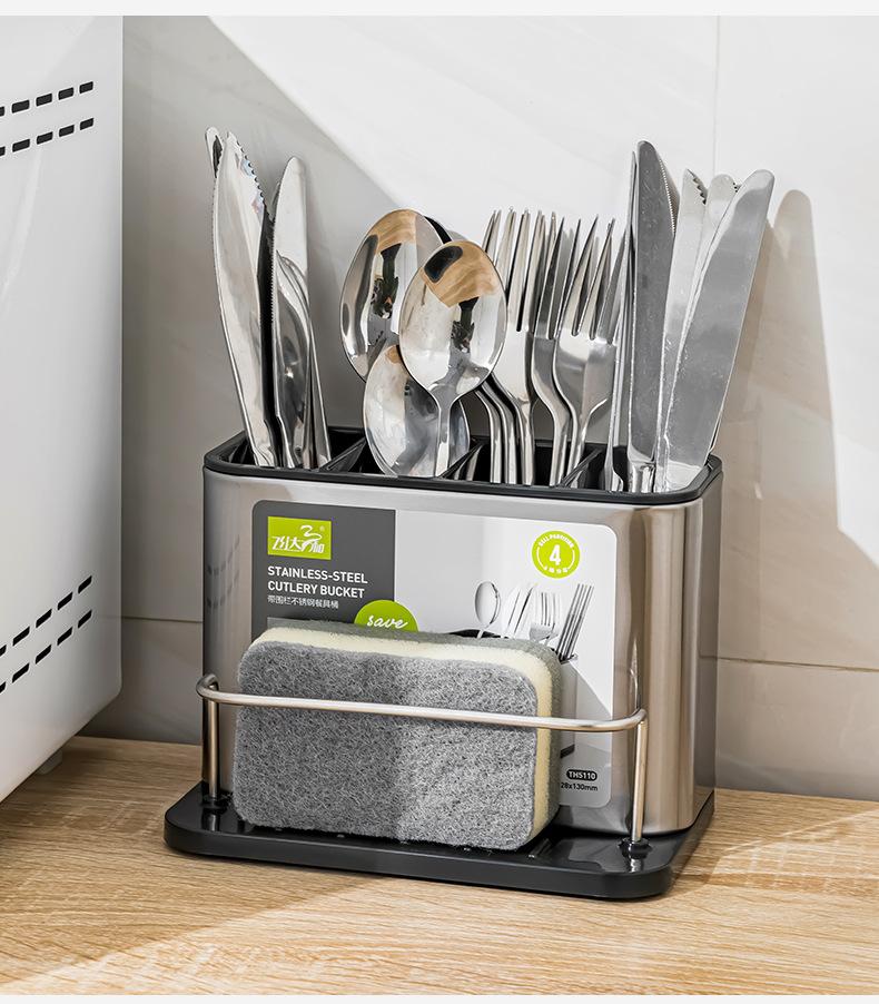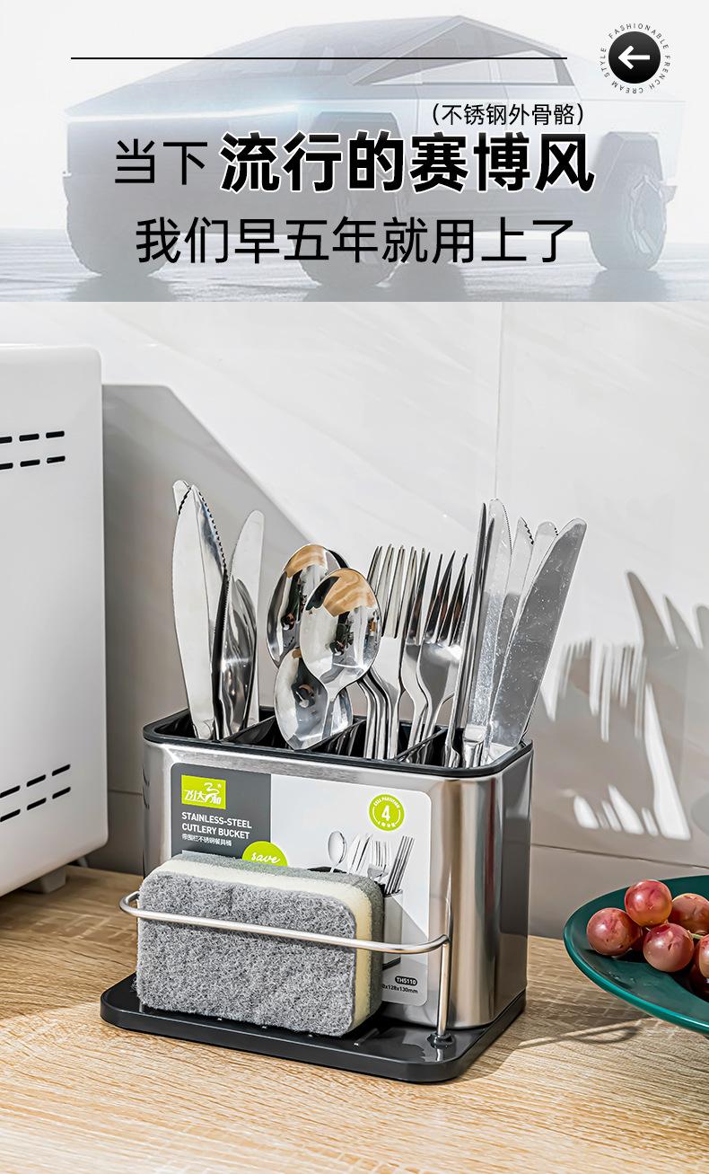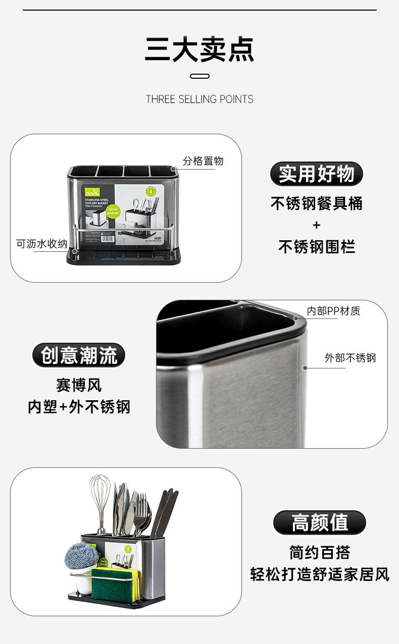 Aço inoxidável high-end estilo europeu pauzinhos gaiola com cerca grade pauzinhos armazenamento balde faca suporte garfo assento TEMU Amazon atacado