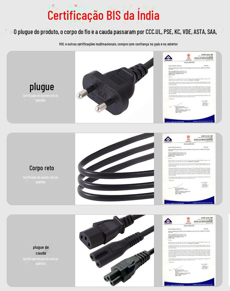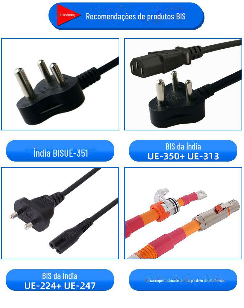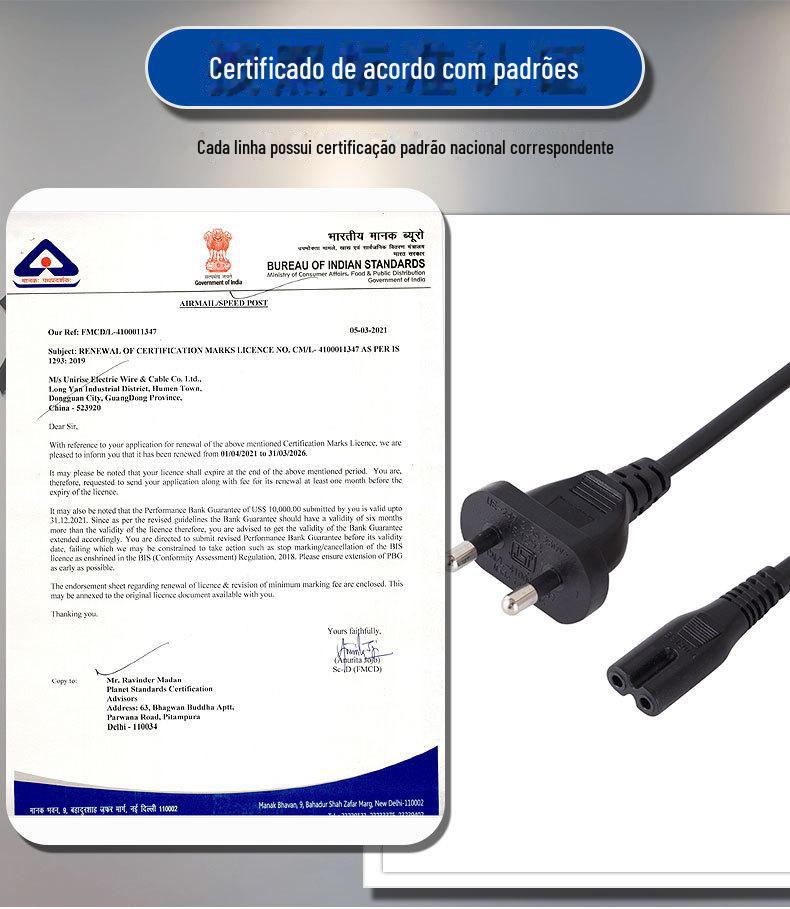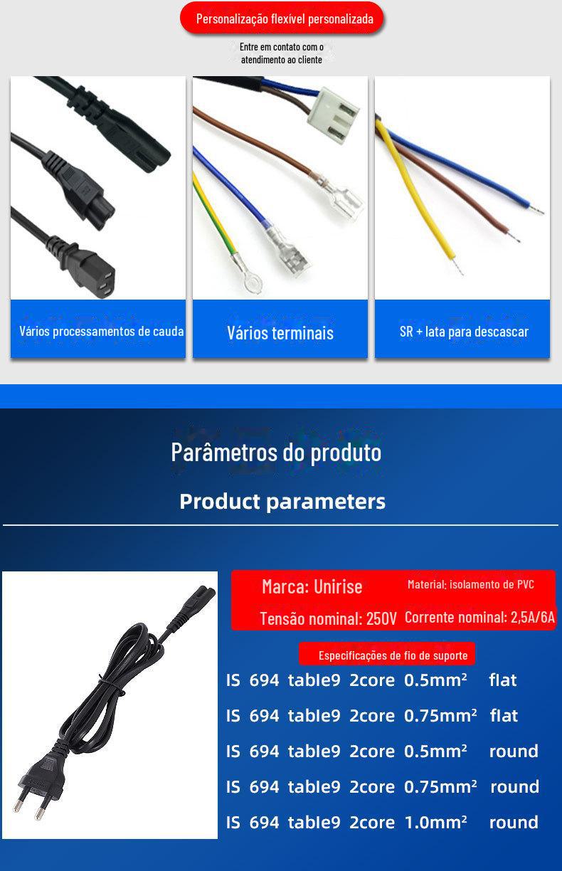 Cabo de alimentação personalizado de dois núcleos, oito pontas/cauda nua, pequeno, África do Sul, Índia, Indonésia, calibre, cabo de alimentação personalizado de dois plugues