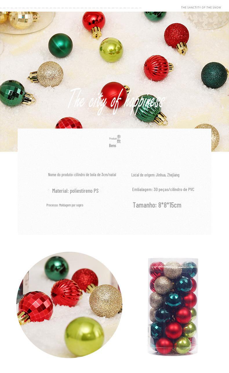 Cross-border novas decorações de Natal 3cm/30PCs barril em forma de bola de Natal pacote pingente árvore de Natal