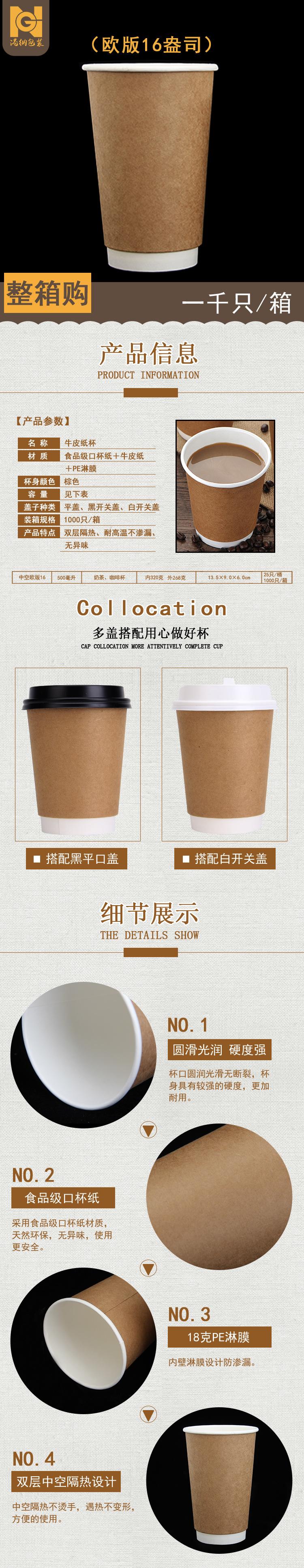 Copo de Papel Descartável 16oz Kraft Oco Camada Dupla Copo para Bebida Quente Café Para Levar Copo para Chá com Leite Personalizado Certificado Ecologicamente Correto