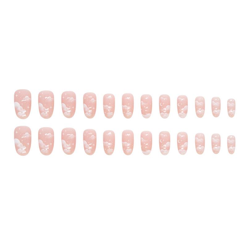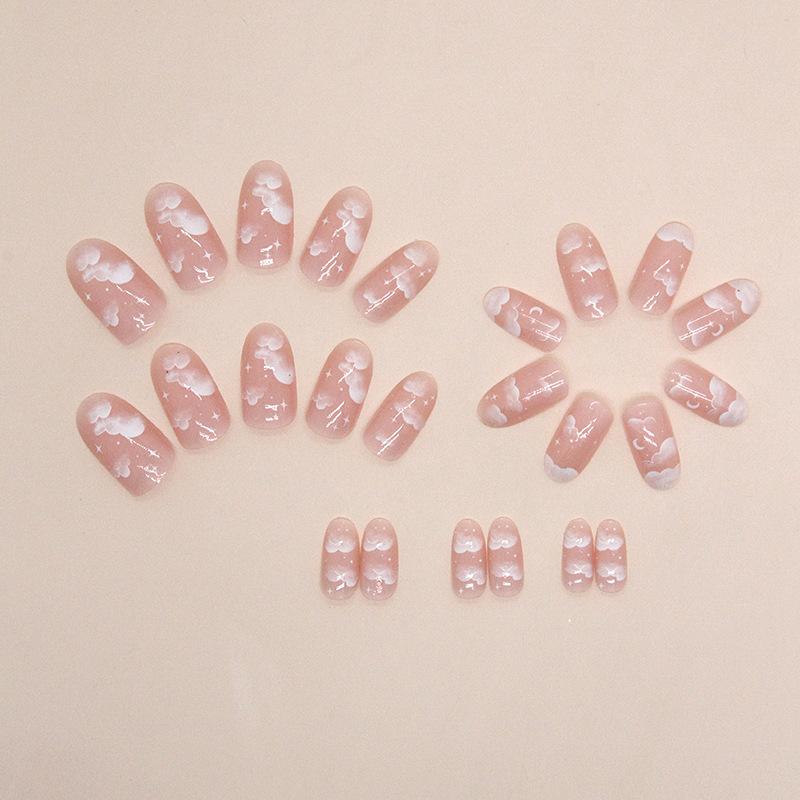 Suave e bonito leite rodopiando nuvens estrelas Branco longo oval europeu e americano ins estilo unhas postiças manicure