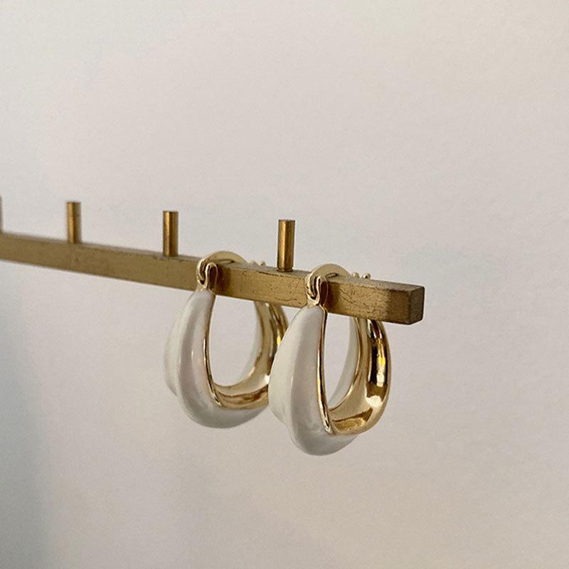 Compre Creme Coreano Branco Gota Glaze Francês Círculo Brincos Elegantes para Mulheres 2021 Novo Design Moda Sentido Brincos de Nicho no atacado no Joom.pro