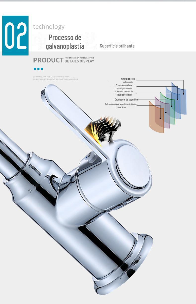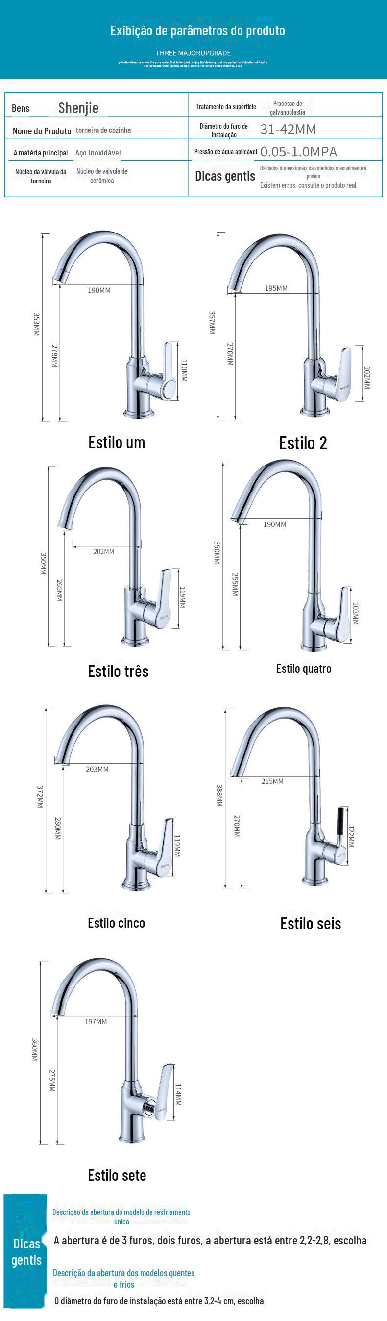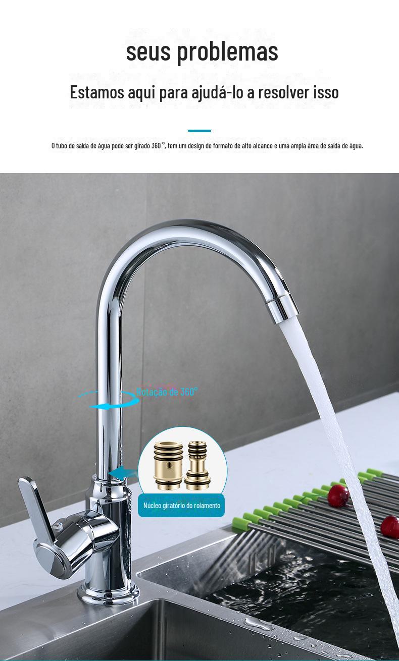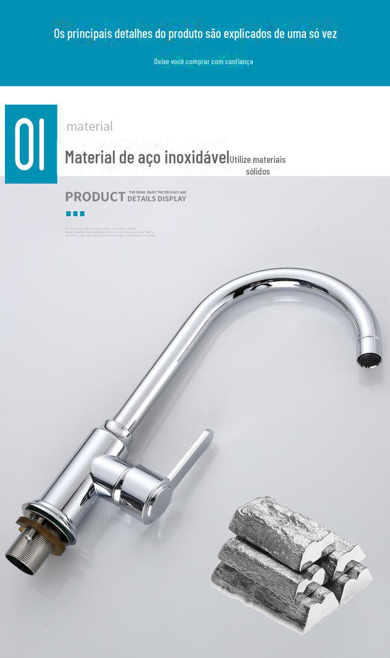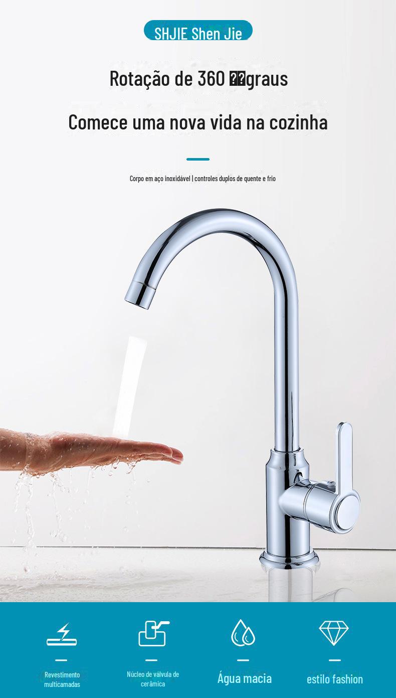 Torneira de Cozinha para Pia, Quente e Fria, Aço Inoxidável 304, Giratória, Estilo Moderno