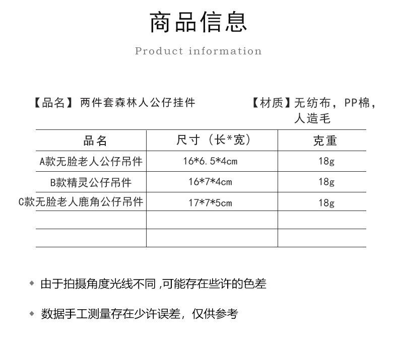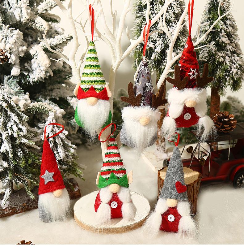 D-GJ25 A No Face Old Man Doll Hanging, D-GJ23 B elf doll hanging, D-GJ24 C old man without face antlers doll hanging