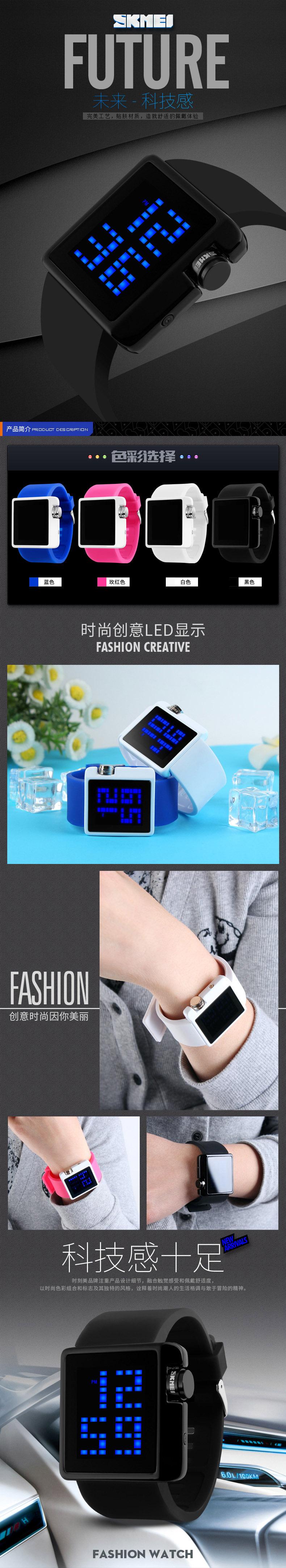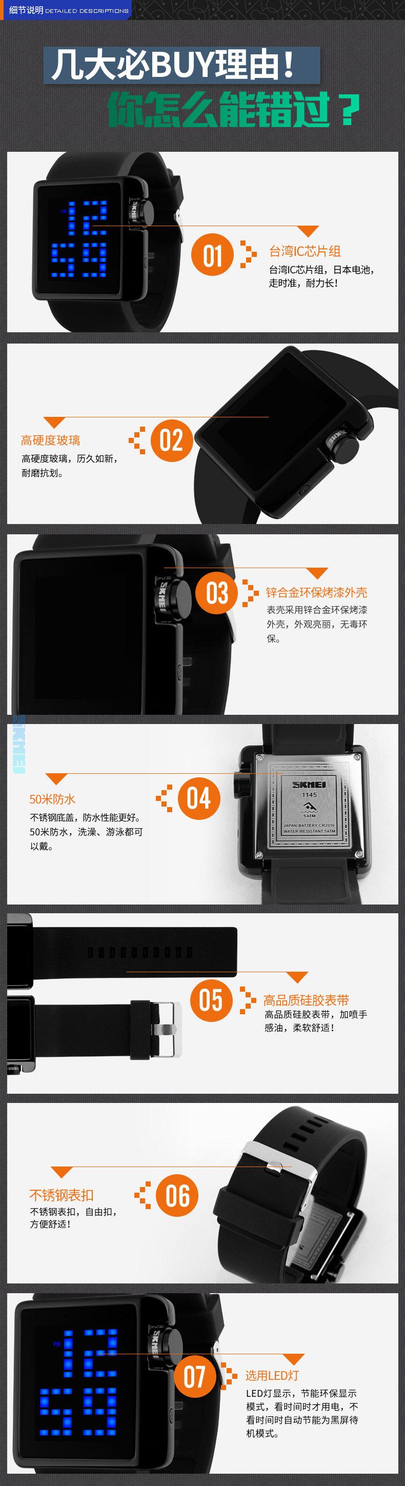 | Material | Caixa em liga de zinco, pulseira de silicone, espelho de vidro espesso e endurecido, tampa inferior em aço inoxidável, fivela em aço inoxidável |