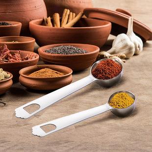 Colher medidora multifuncional de aço inoxidável, padrão europeu 430, clipe de vedação para saco de comida criativo, dois em um, colher medidora de grãos de caféRMB2,80