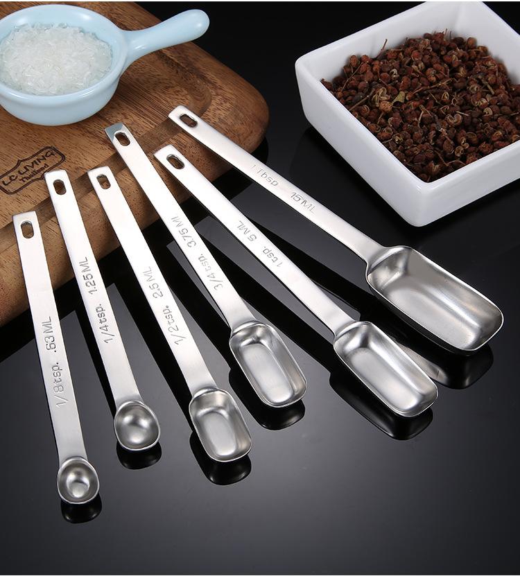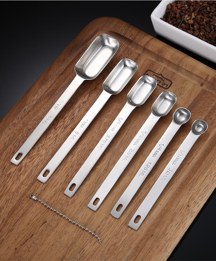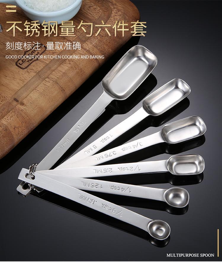 Fábrica Direto de aço inoxidável colher de medição 6 peças cozinha tempero assando colher de medição com balança terno cabeça quadrada colher de cozimento