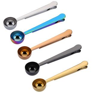 Colher medidora multifuncional de aço inoxidável, padrão europeu 430, clipe de vedação para saco de comida criativo, dois em um, colher medidora de grãos de café¥2,80