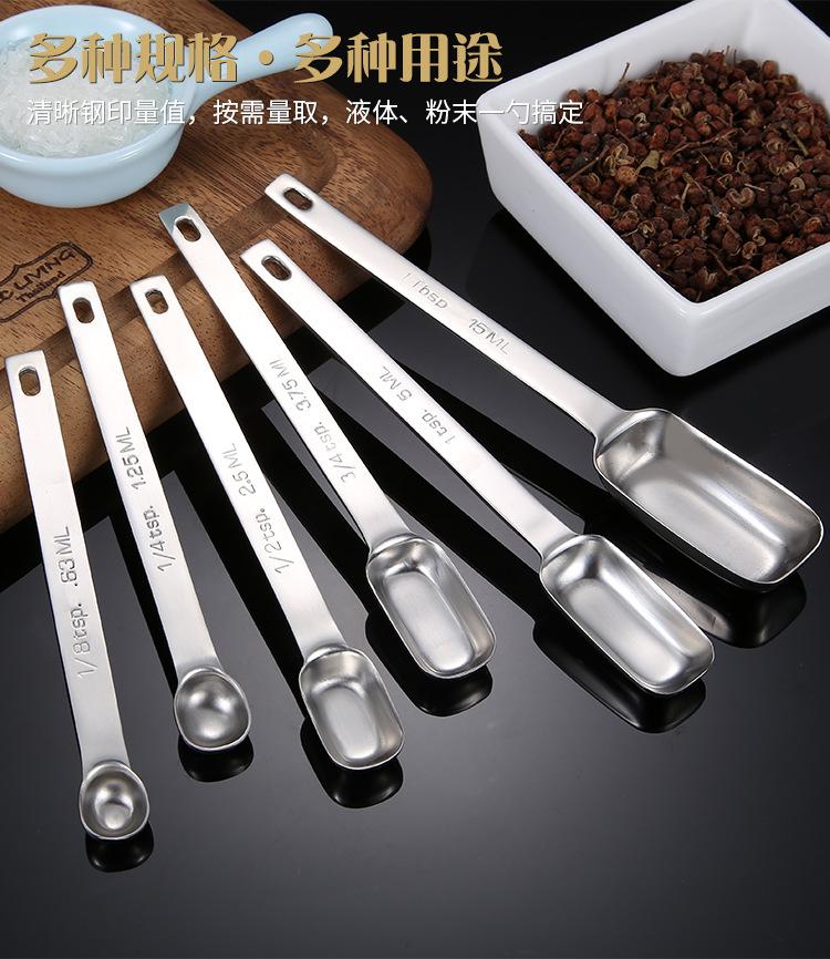 Venda direta da fábrica colher de medição de cinco peças de aço inoxidável cozinha cozimento com escala tempero copo de medição colher de tempero de 4 peças¥1,50