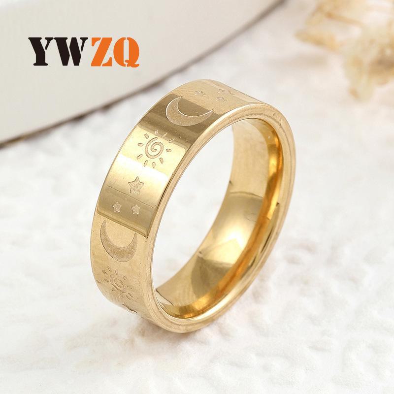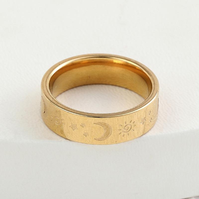 Fornecimento Transfronteiriço de Fabricantes de Joias de Aço Inoxidável Corrosão Sol, Lua e Estrelas Anéis de Aço Titânio, Anéis de Casal Exquisitos e da Moda
