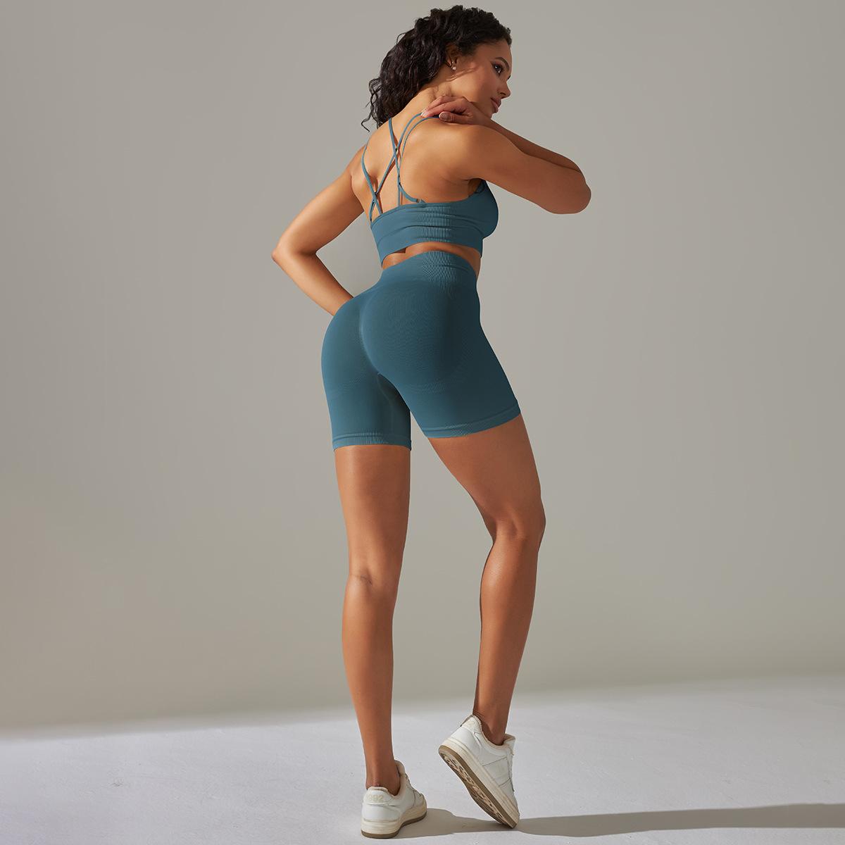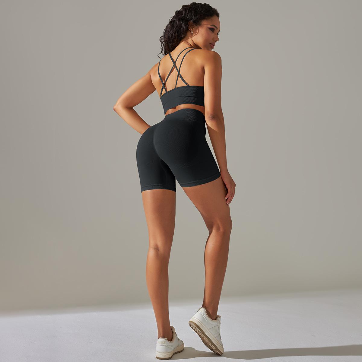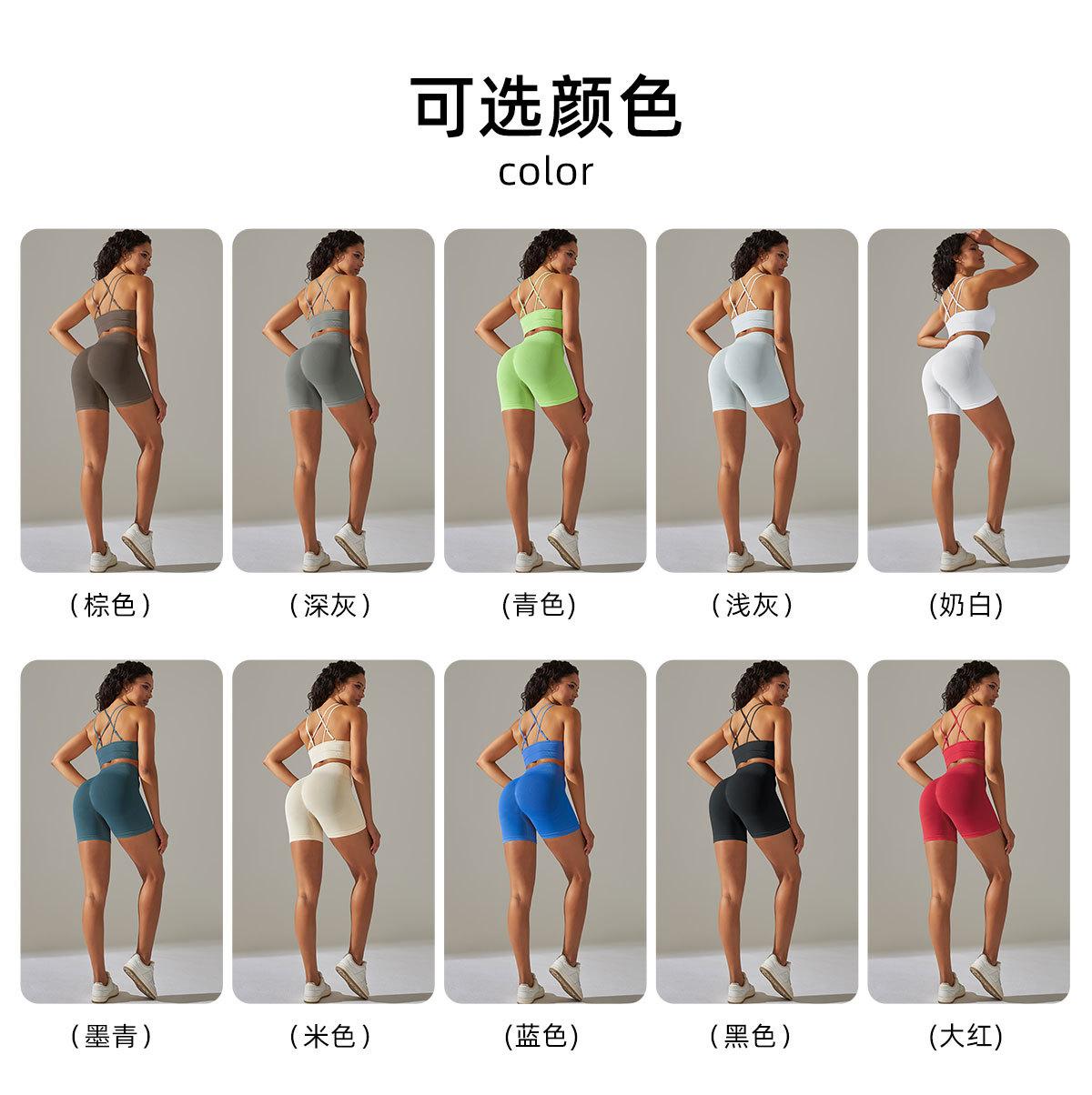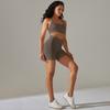 Roupa íntima esportiva justa e sem costura europeia e americana transfronteiriça, traje de ioga, shorts de corrida e fitness, conjunto de duas peças