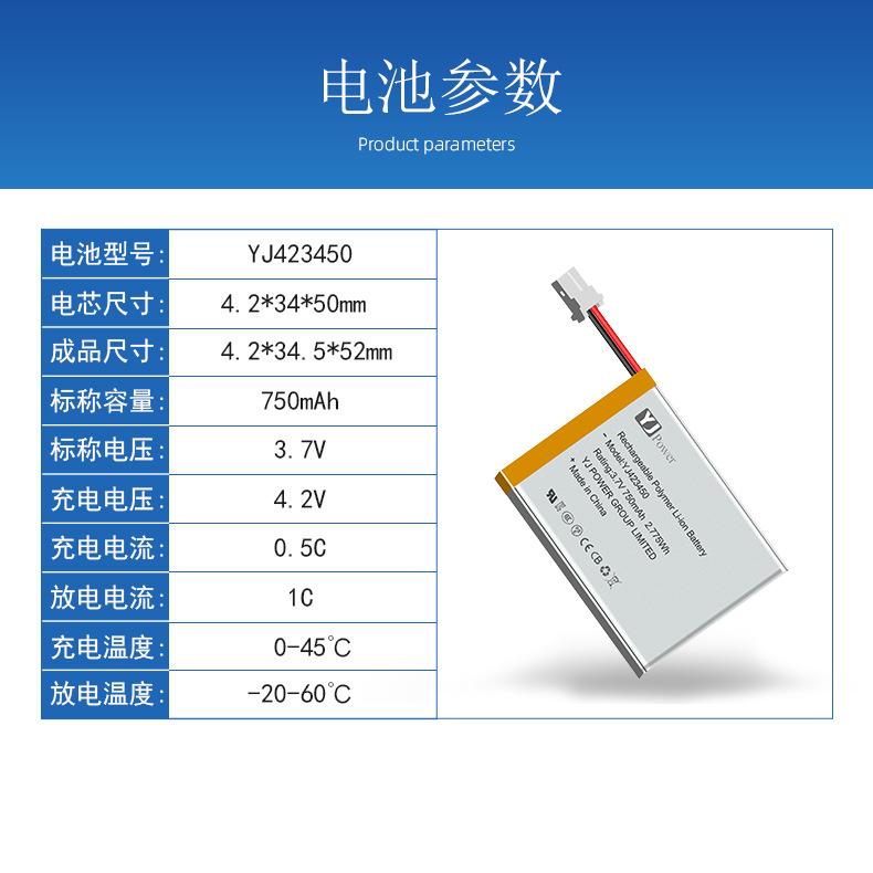 Bateria de lítio de polímero 423450 3.7v 750mAh massageador detector de beleza instrumento com KC e MSDS