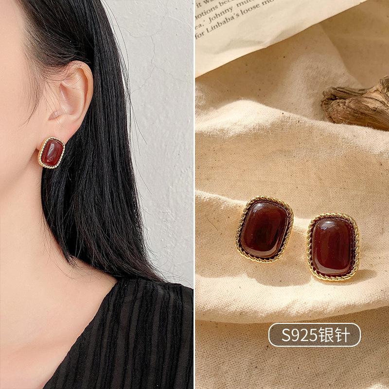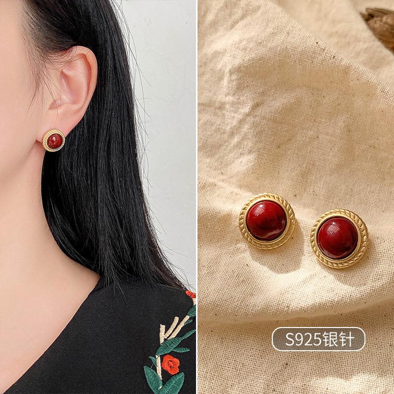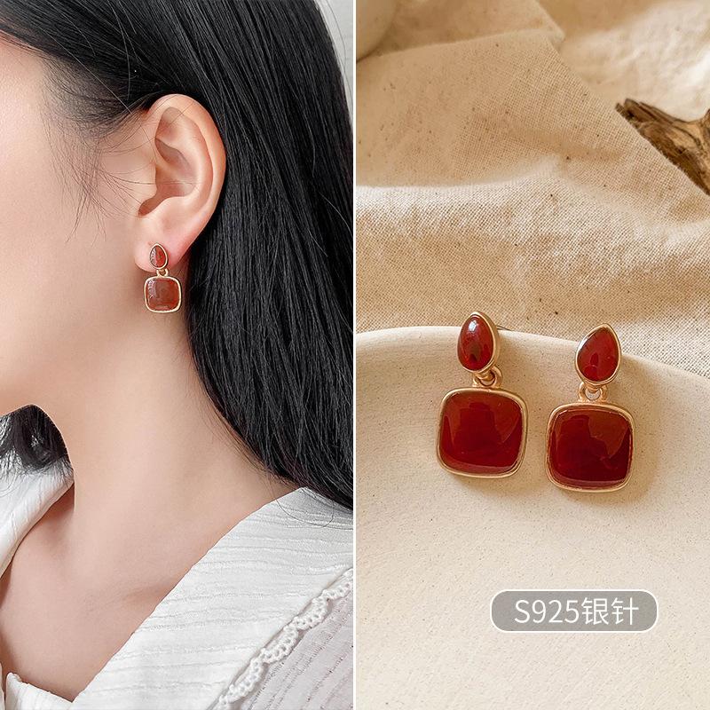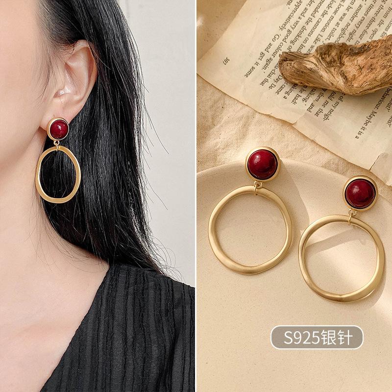 Compre S925 agulha de prata estilo coreano brincos novos brincos retrô vermelho longo elegante brincos simples das mulheres brincos elegantes all-match no atacado no Joom.pro