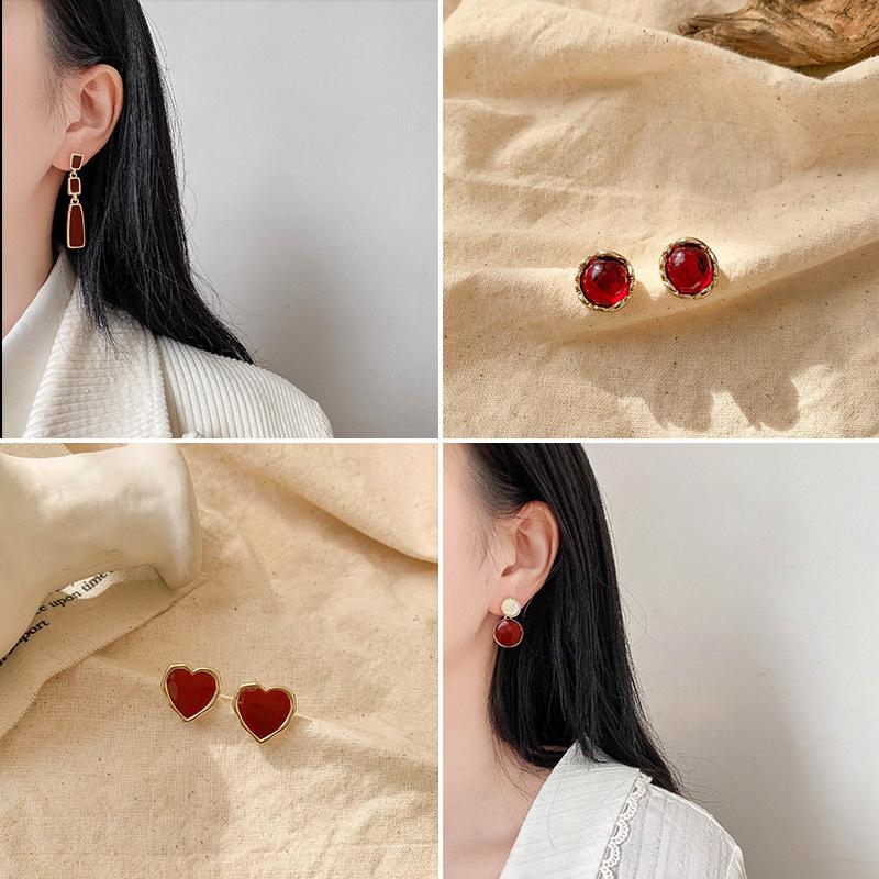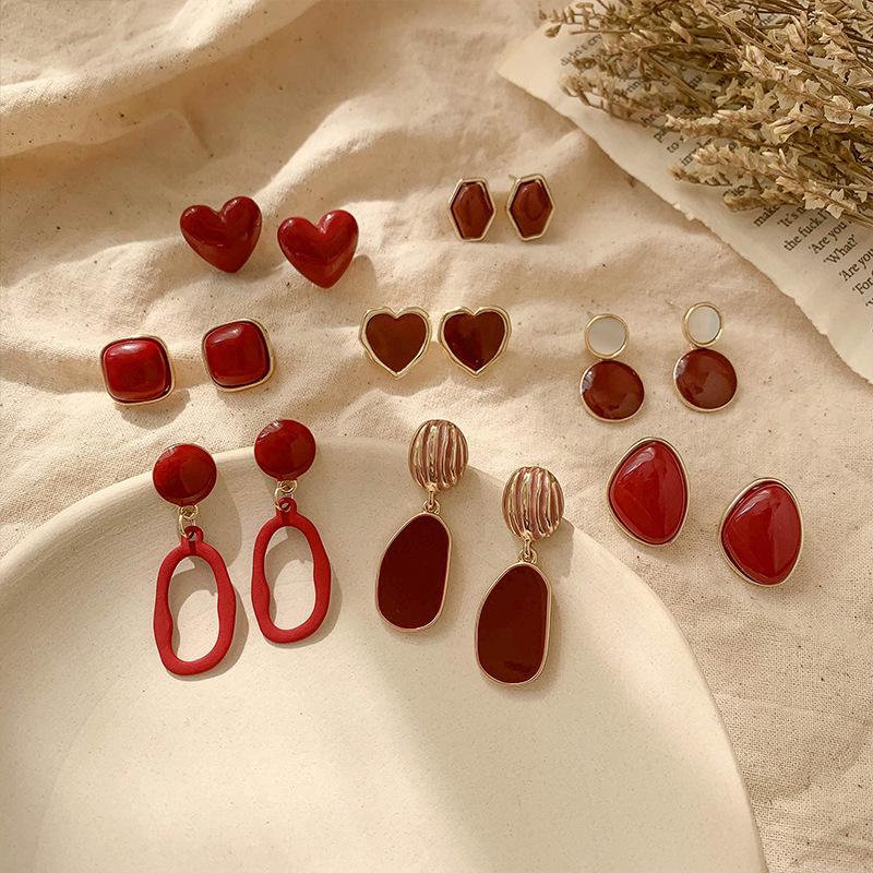 3# irregular red earring earrings, 7# tassel long eardrop earrings, 10# retro red bean earrings, 13# twisted h...