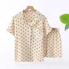 Pijama de verão de crepe de algodão, gola alta, estilo puro, manga curta, shorts, roupa de casa de algodão lavado para mulheres