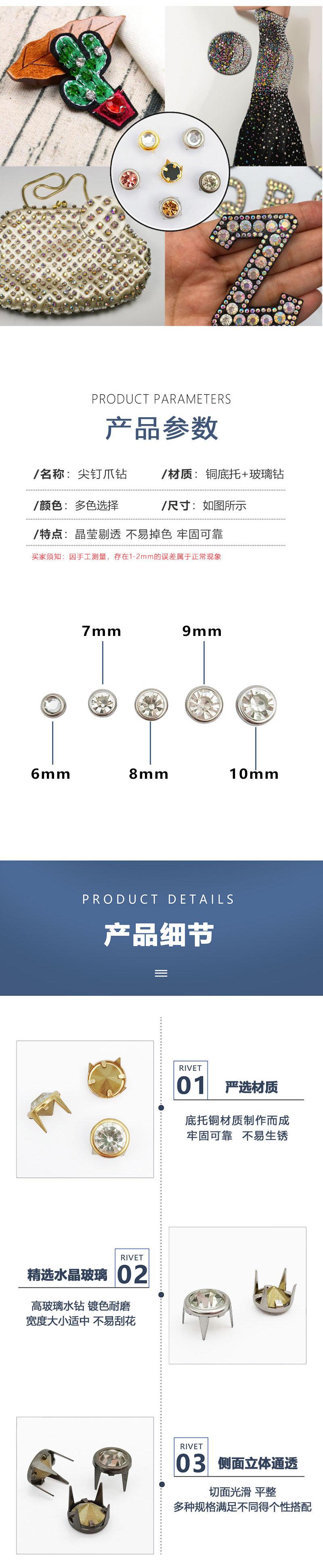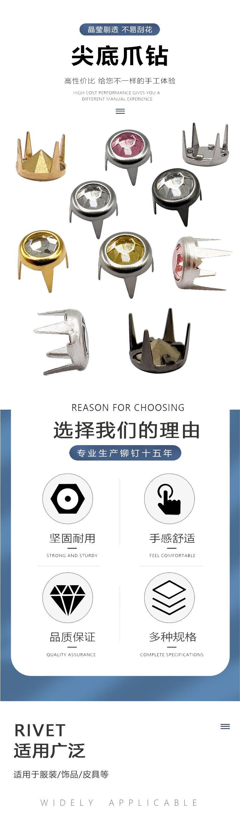 Fornecimento transfronteiriço de vidro de joias de strass de fundo afiado de quatro garras Um rebite de diamante cor de diamante diy acessórios de saco de roupa