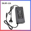 Carregador de bateria de alta potência de 48 V série 14, 58,8 V2 A para scooters elétricas, certificado pela IEC-CB, alta qualidade e aplicação para ETL, GS e outras certificações multinacionais. Tensão de entrada: 100-240 VCA 50/60 Hz Especificações de saída: 58,8 V2 A ambos os lados, invólucro de pressão ultrassônica, selado, sem ventilador, longa vida útil.