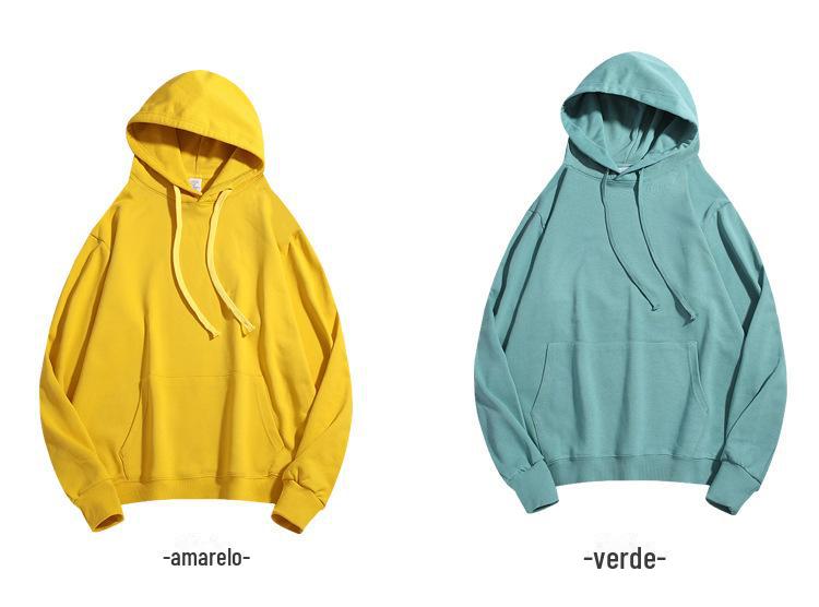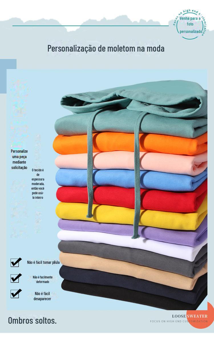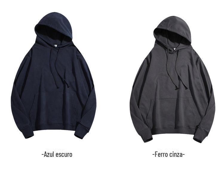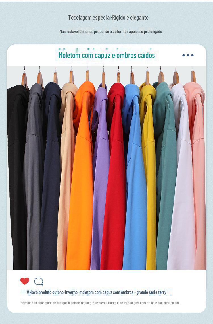 Cross-border pesado Terry drop shoulder 400g suéter com capuz grosso casaco solto capuz masculino e feminino suéter de cor sólida