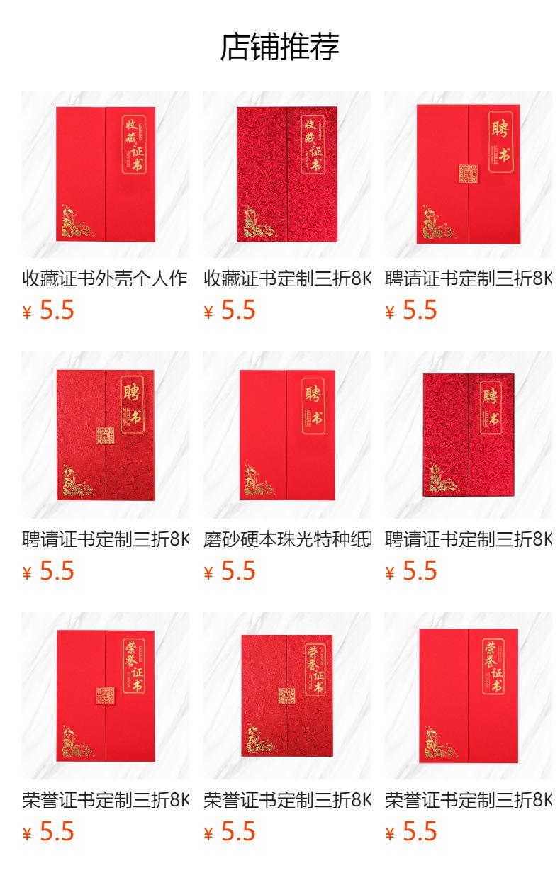 Certificado de Coleção Personalizado Trifold 8K Prêmio de Apreciação Avaliação Certificado de Coleção Capa de Certificado Carta de Nomeação Certificado de Coleção Cx