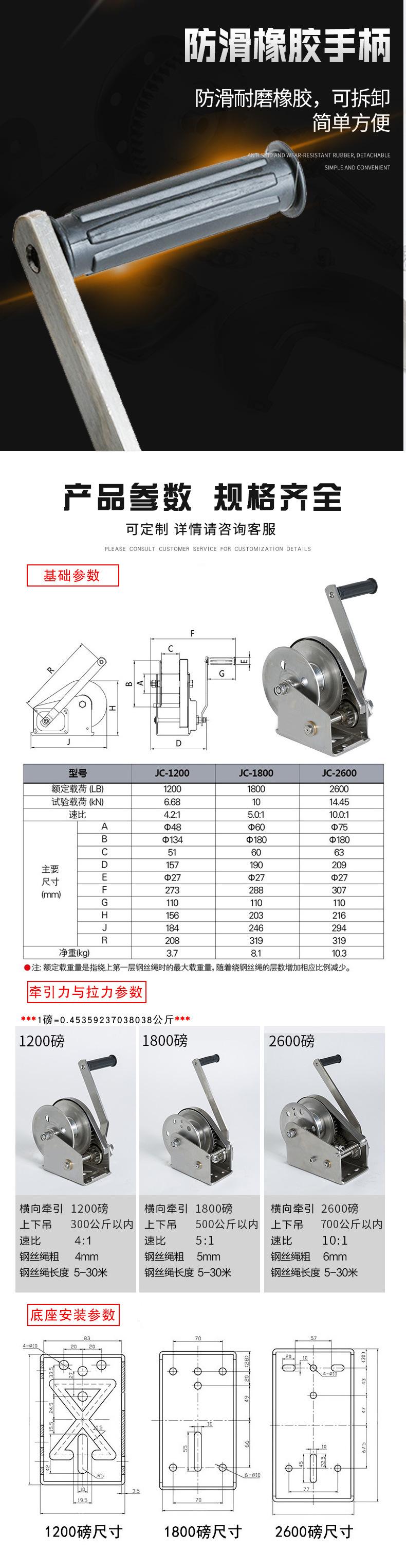Compre Chicote de mão autoblocante bidirecional 1200 libras 2600 libras manual com freio 304 todo guincho de mão de aço inoxidável no atacado no Joom.pro