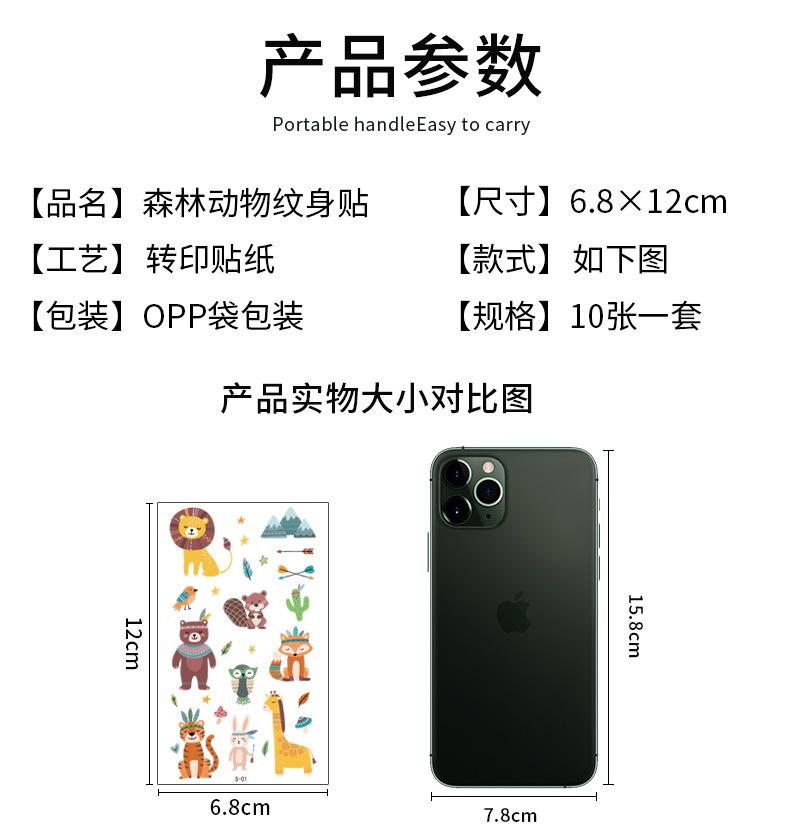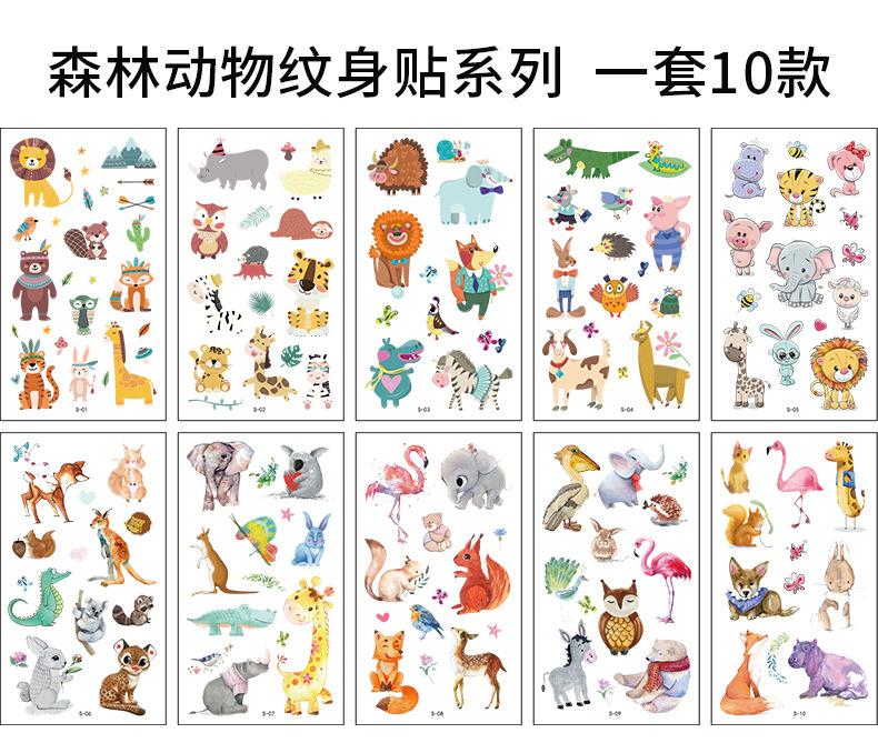Cross-border novo animal dos desenhos animados tatuagem elefante Tiger Fox girafa adesivos de festa temporária atacado