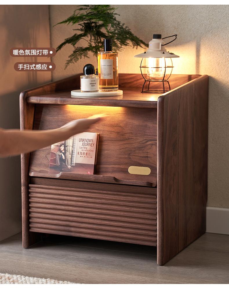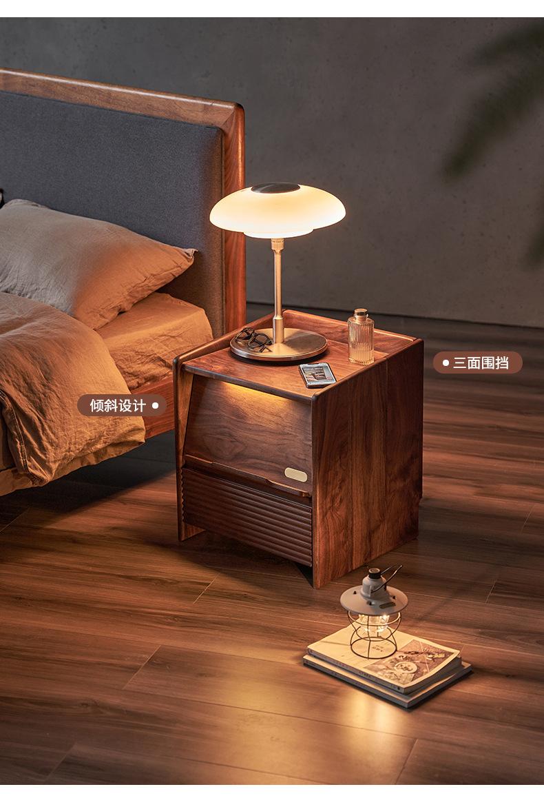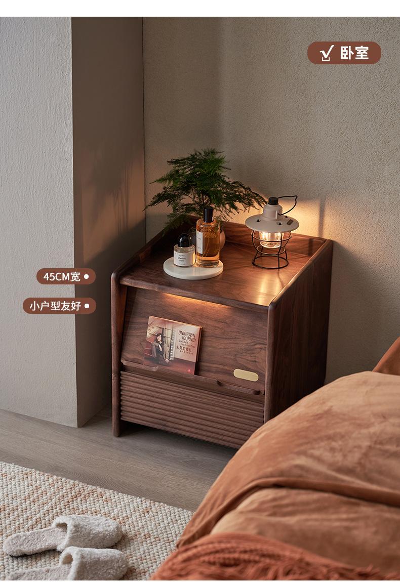 Mesa de cabeceira de madeira maciça nórdica preta de nogueira moderna minimalista de luxo de luxo pequeno apartamento quarto de madeira de cerejeira armário de cabeceira