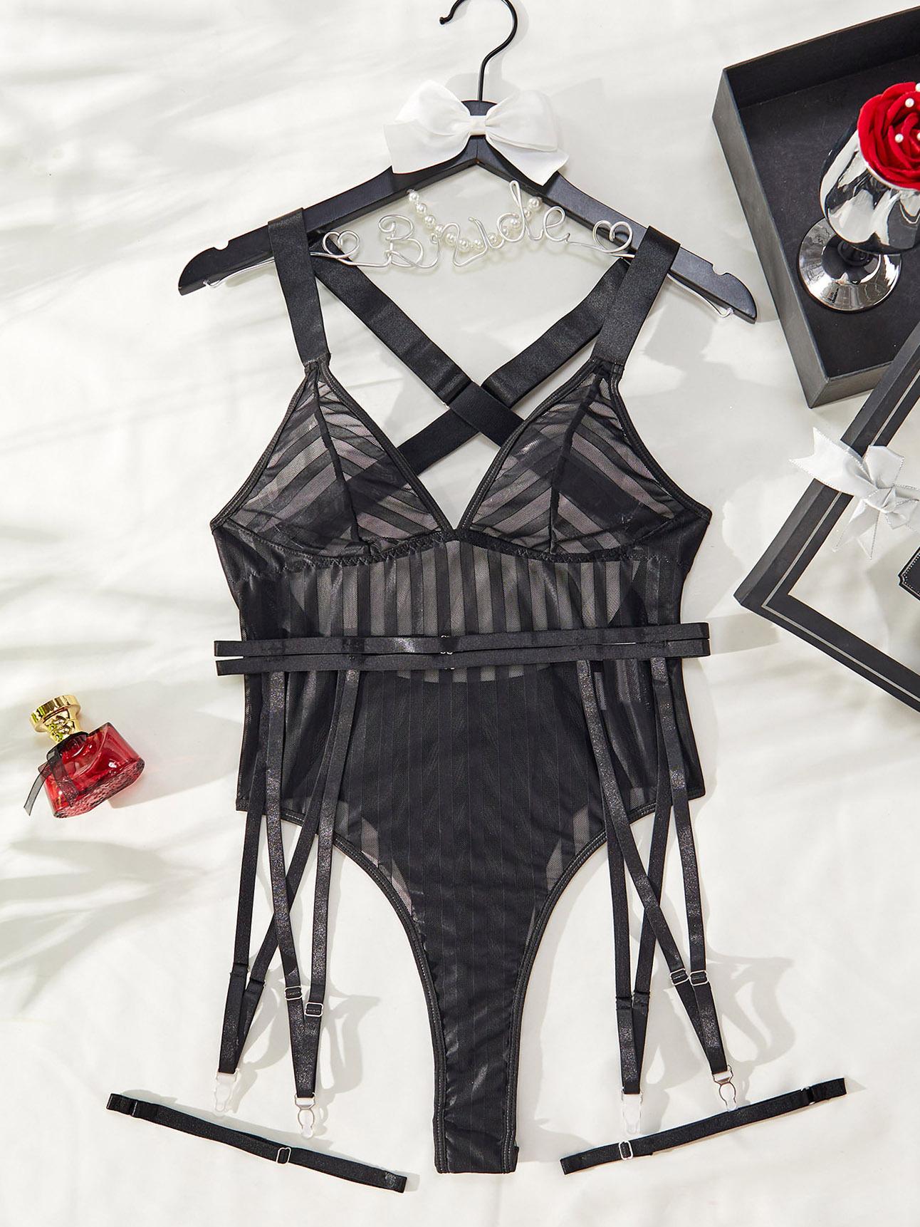 Macacão com Ligas Listrado Novo Mais Vendido da Amazon, Lindo Costas Abertas em Tela Transparente Sexy Selvagem Estilo Boate