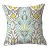2, a frente é um padrão impresso digitalmente e a parte traseira é de tecido de cor sólida.