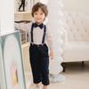 Meninos estilo coreano Gentleman's Sling Suit primavera e outono manga comprida camisa listrada Performance Dress Nova roupa infantil