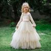 Europeu e americano meninas vestido fofo tule vestido de princesa crianças piano desempenho vestido flor menina renda vestido de casamento saia